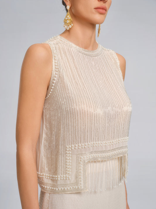 Triangle Hem Sequin Beaded Vest