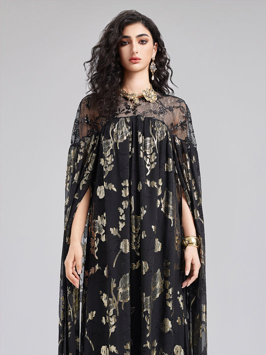 Burnt Velvet Gold Smudge Printed Lotus Collar Dress