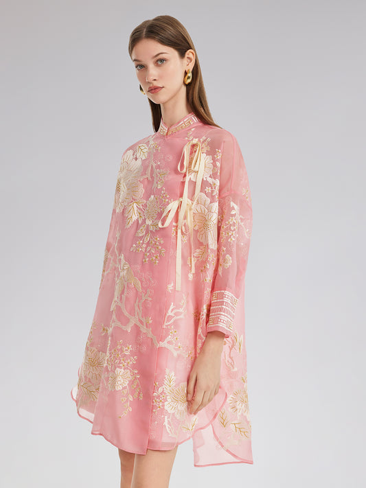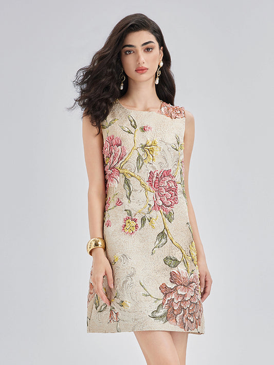 Hand-Beaded 3D Floral Jacquard Tank Dress