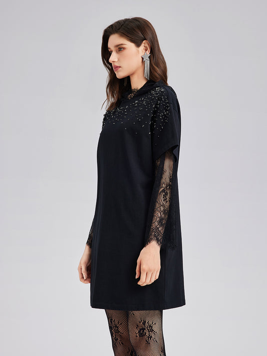 Guipure Lace Hand-Applied Crystals Mini Dress