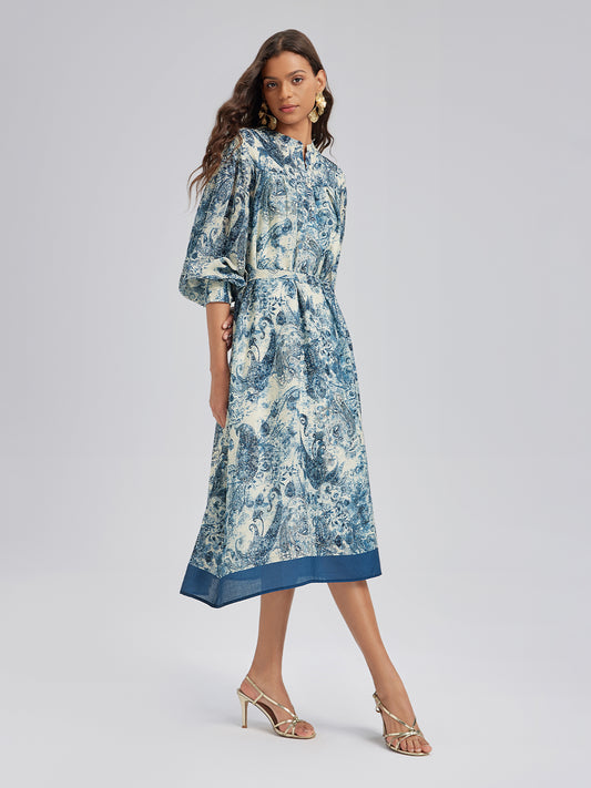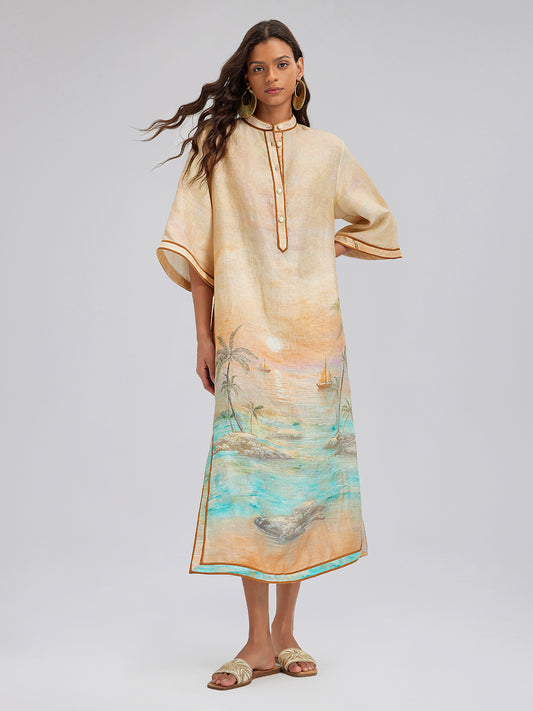 Silk-Wool Hand-Beaded Dress (Belt Included)