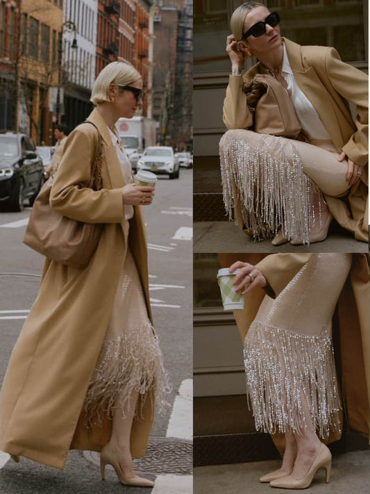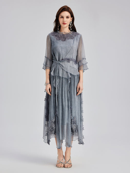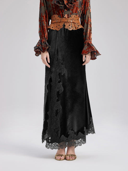 Sequin Trimmed French Mesh-Hem Design Skirt
