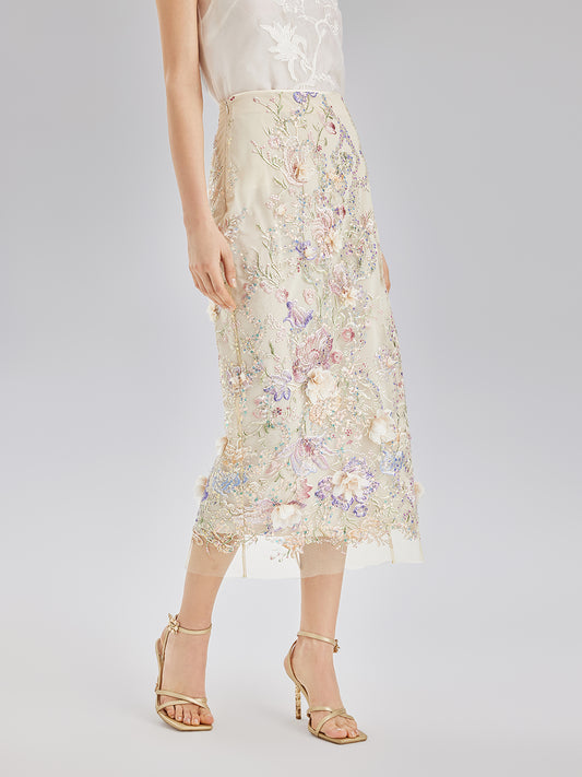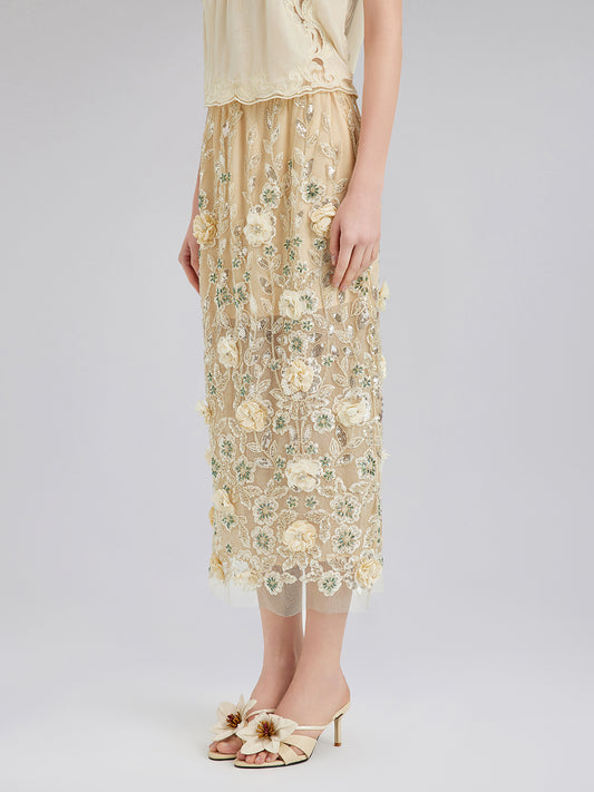 Handcrafted 3D Floral Beaded Embroidered Skirt