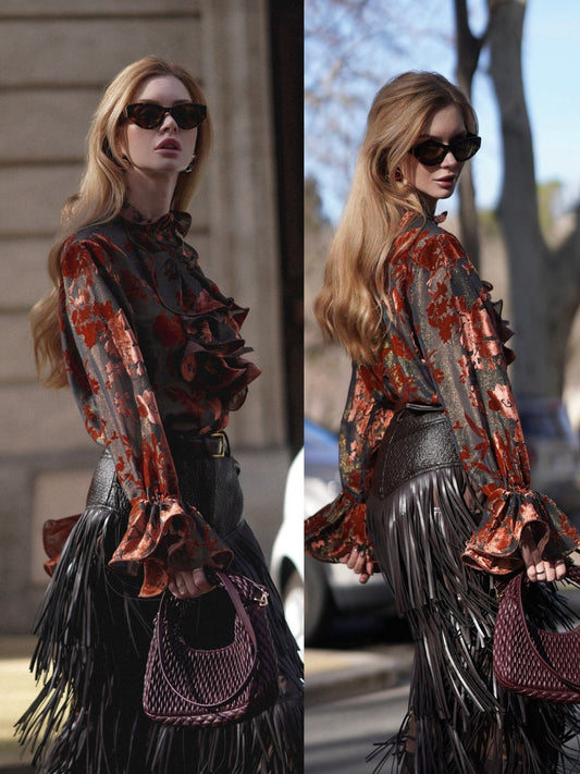 Glittery Silk Burnout Velvet Blouse - Star Queen