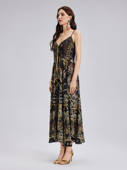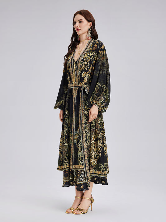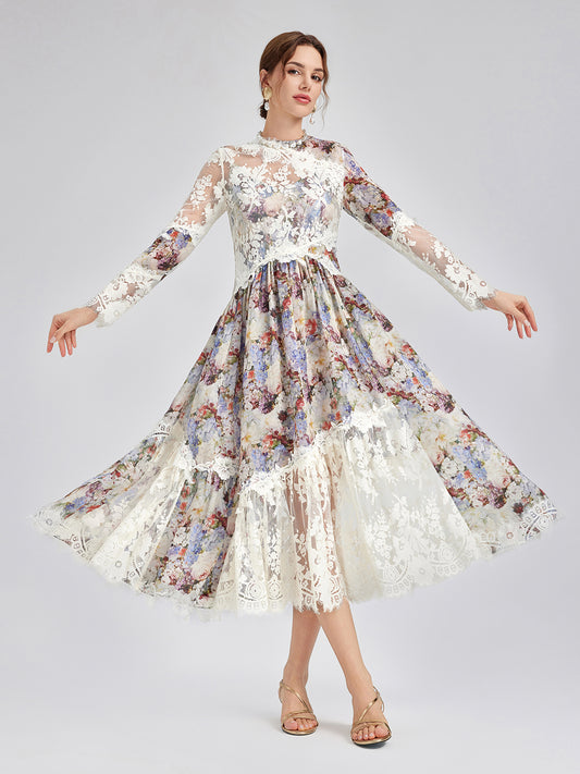 Baroque Silk Lace-Organza Panel Dress (100% Silk Floral Slip Included)