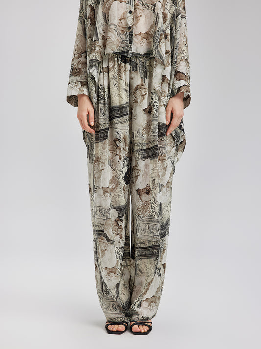 Baroque Linen Wide-Leg Elastic-Waist Pants