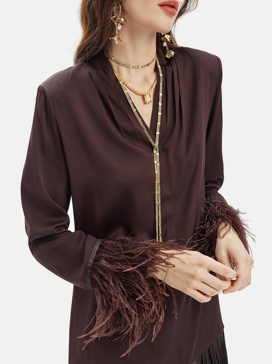 Silk Velvet Devoré Rose Pink Ruffle Blouse