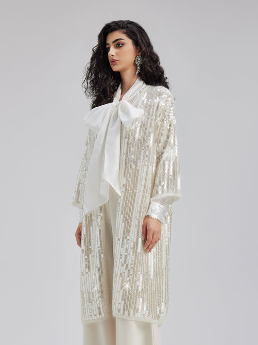 Wool Sequin-Embroidered Round Neckline Jacket (100% Wool)