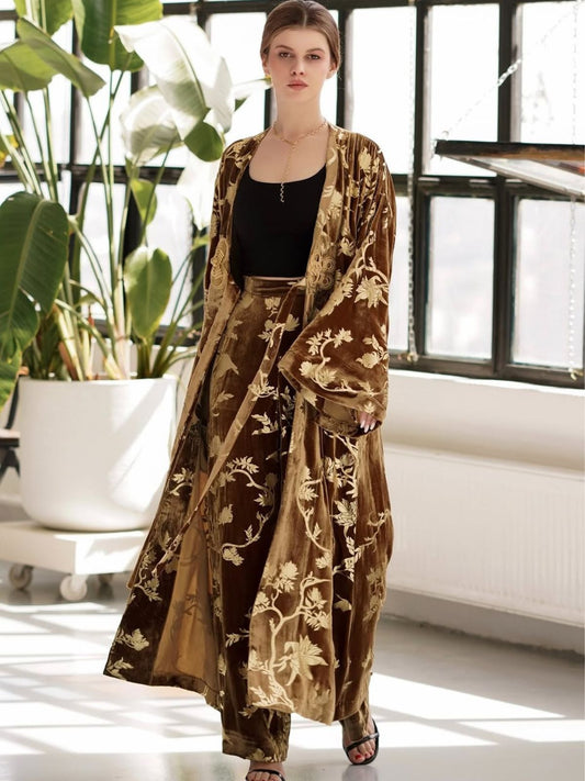 Gold Silk Foil Velvet Trousers (No Belt)