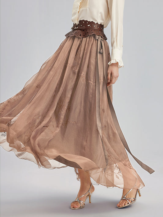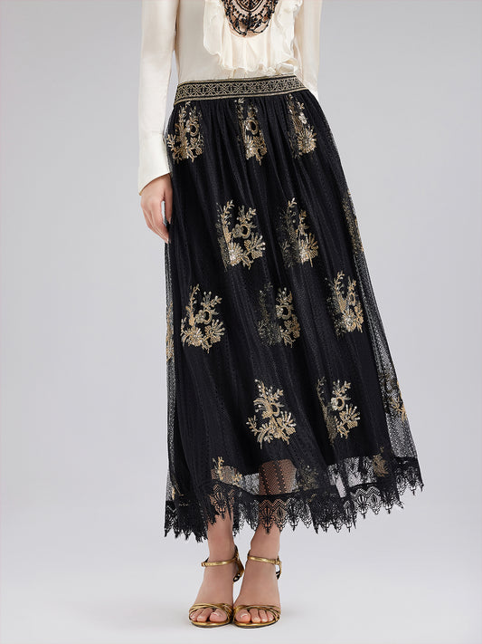Embroidered Luxe Mesh Skirt