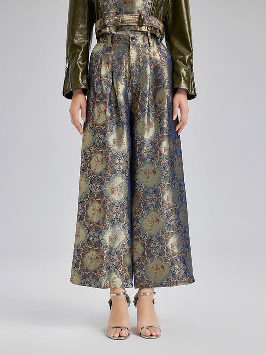 Gold Jacquard Wide Elastic Waist Pants