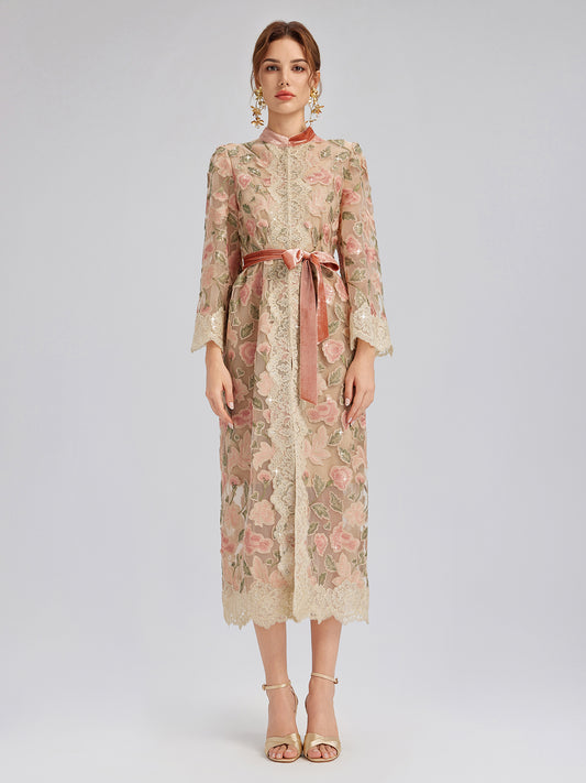Multicolor Floral Embroidered Lace Dress