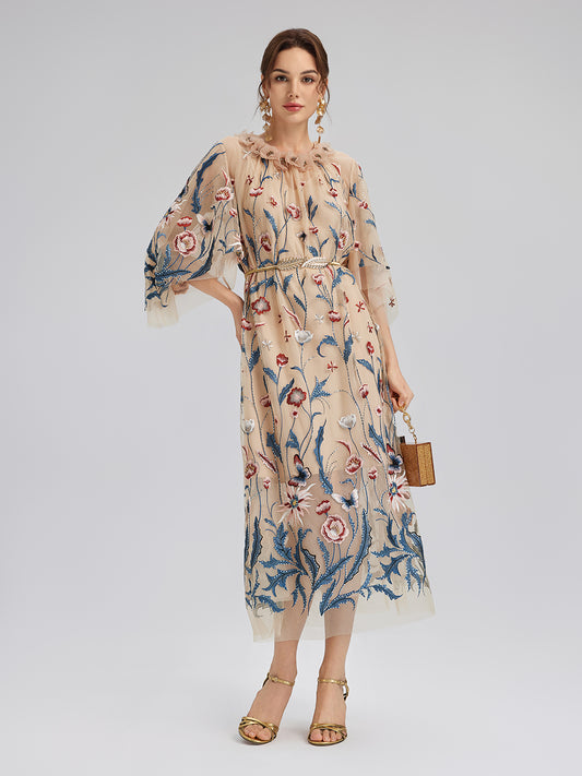 Hand-Beaded Sequin Tulle-Paneled Dress