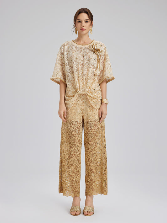 Hand-Beaded Sequin Lace & Velvet Panel Top