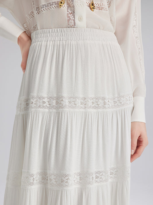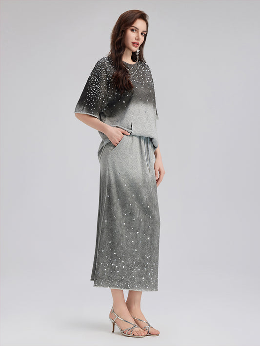 Ombre Sequin Fringe Elastic-Waist A-Line Skirt