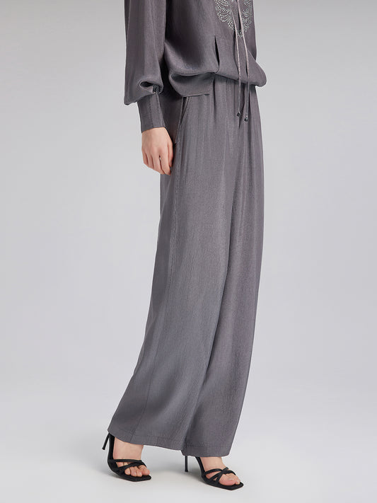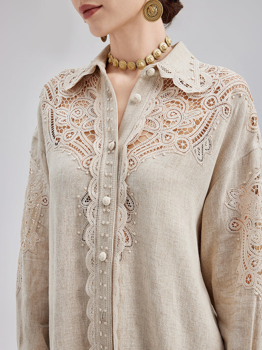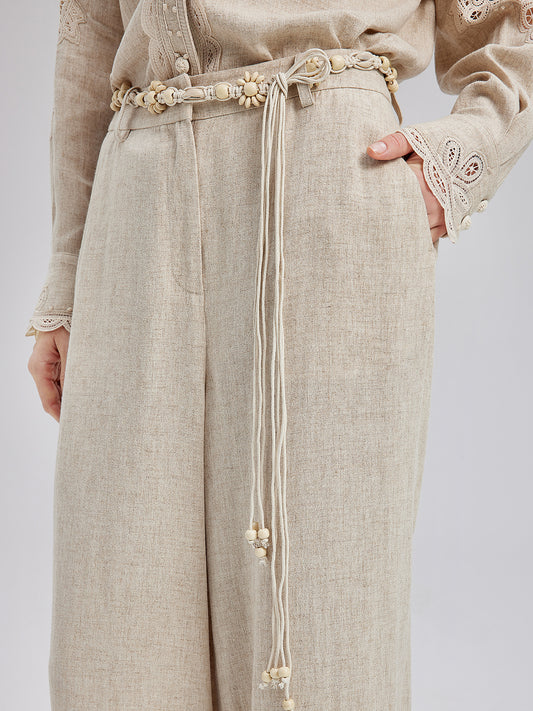 French Ramie Lace-Trimmed Pants with Braided Belt