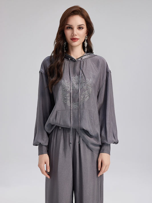 Handcrafted Rhinestone Hoodie Sweatshirt