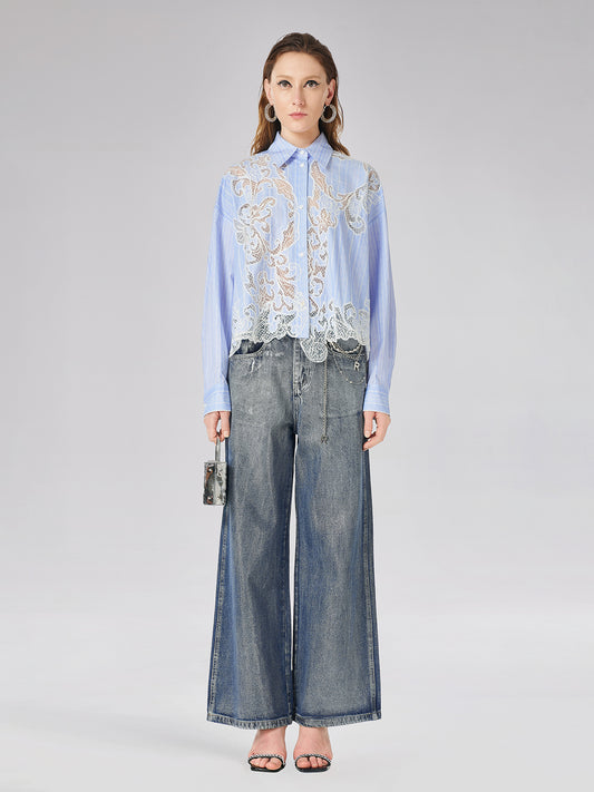 Custom Denim-Effect Gradient Lace Shirt