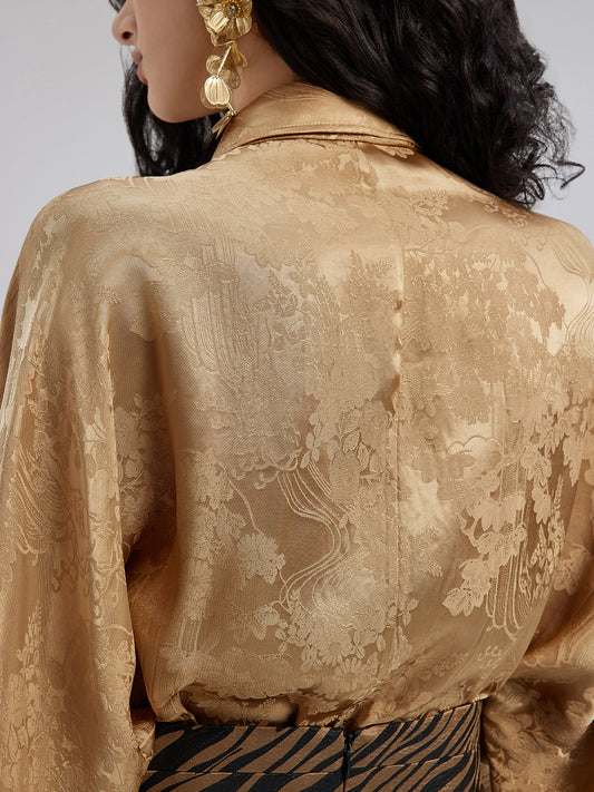 Gold Jacquard Ribbon Detail Elegant Shirt