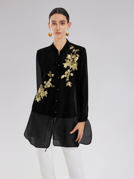 Sequin Trimmed French Mesh-Hem Design Skirt