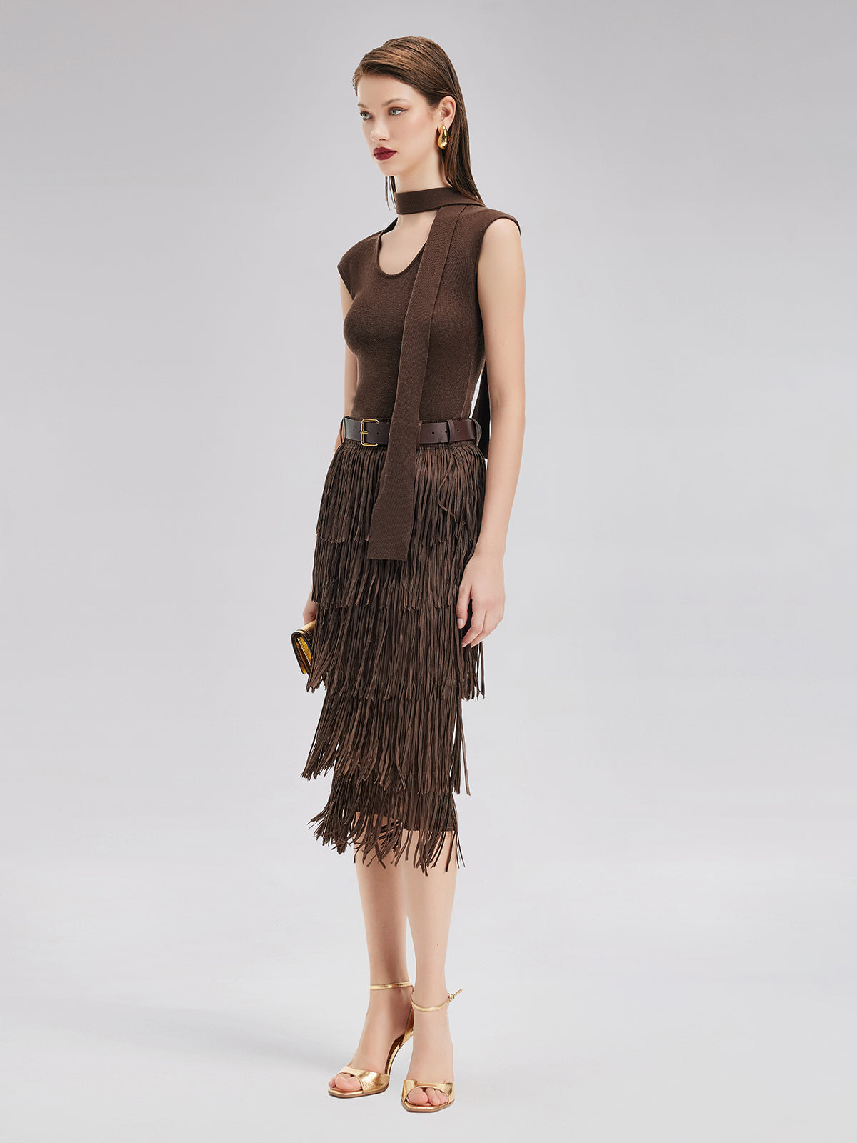 The unique ribbon design adds a sense of movement and layering to the overall look. This design blends artistry with functionality, allowing you to style it in multiple ways to suit your personal flair. Made from high-quality knit fabric, it's soft, stretchy, and comfortable to wear while providing warmth. Ideal for daily commutes, business meetings, and urban leisure.