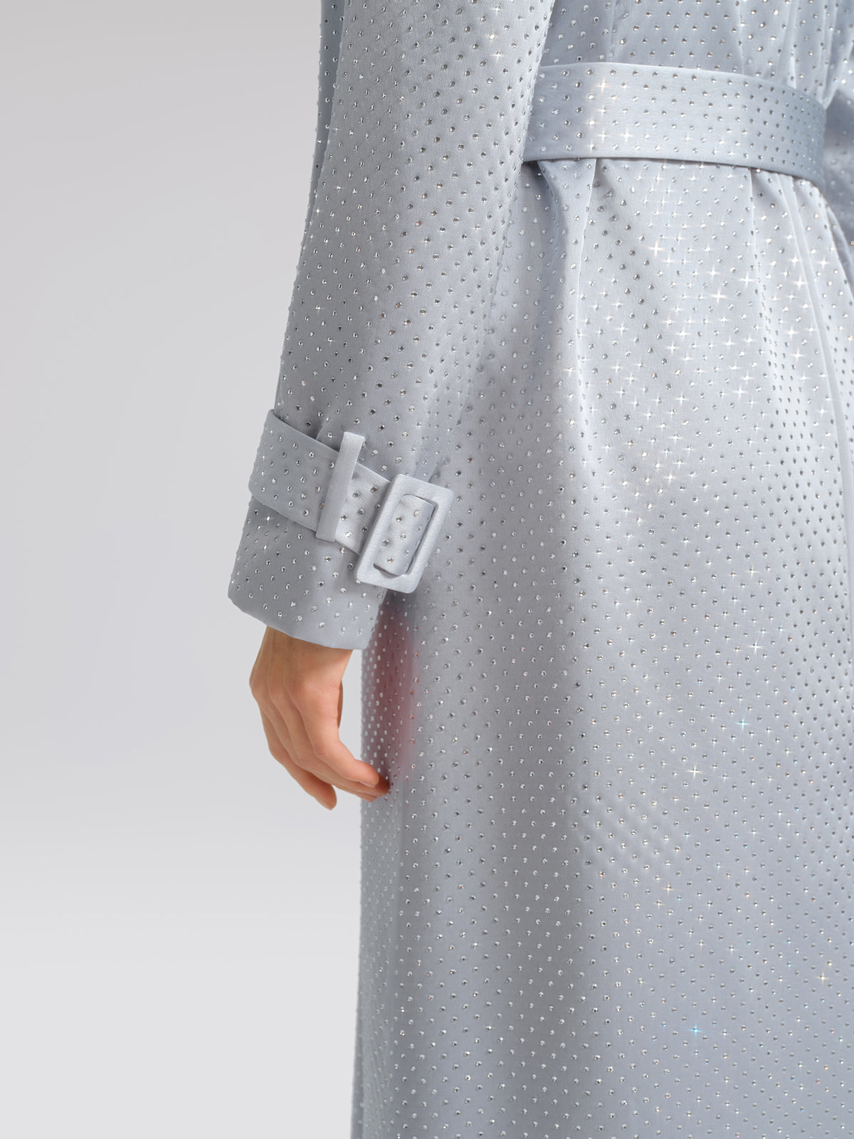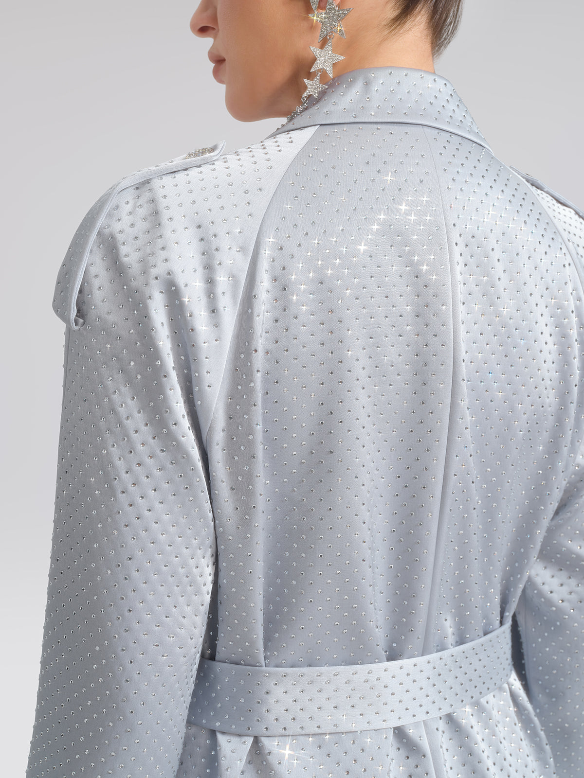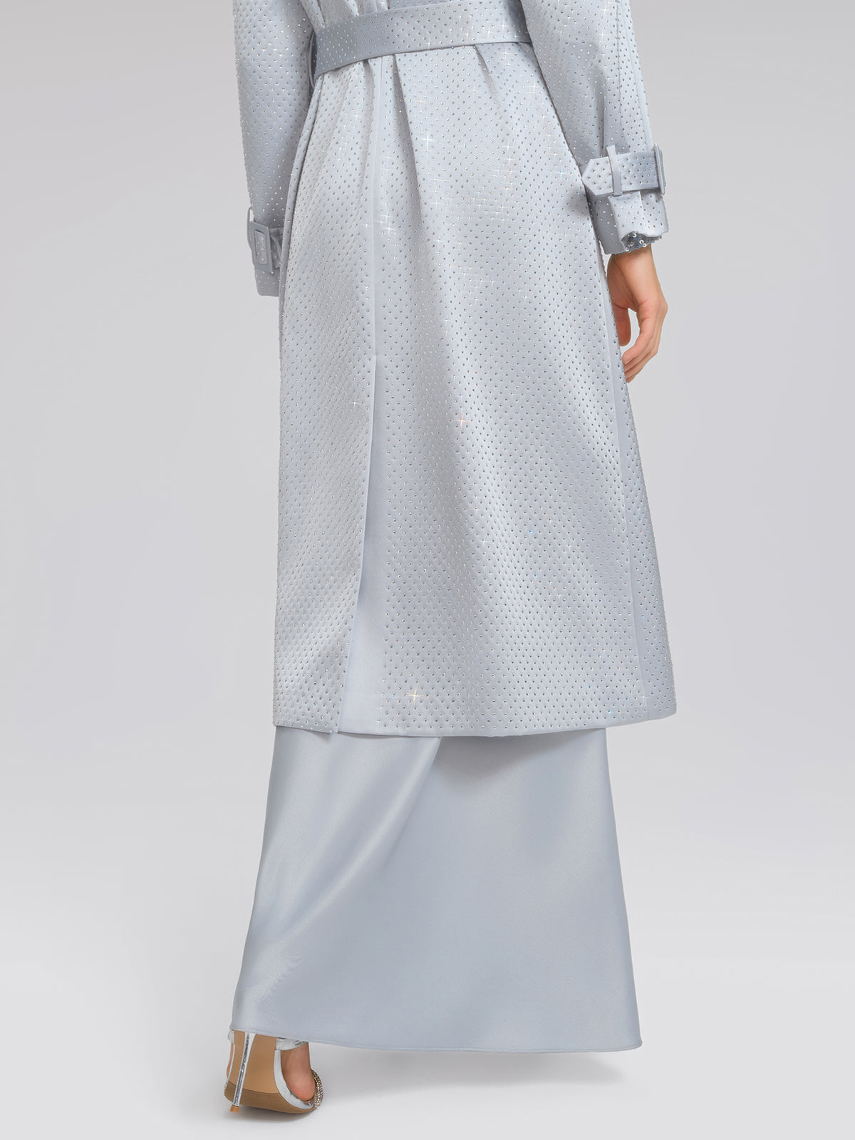 Handcrafted Rhinestone Satin Trench Coat (Belt Included)