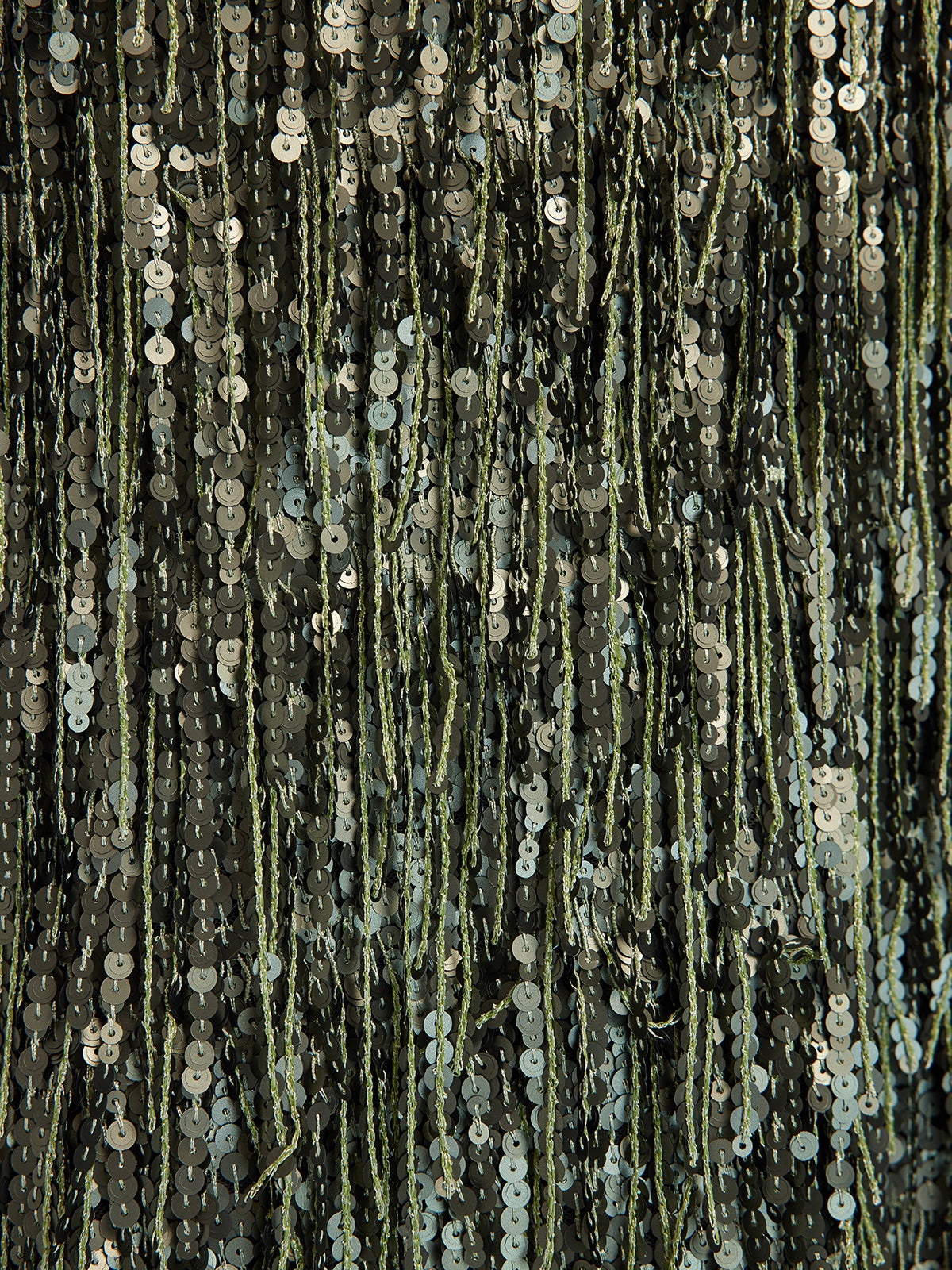 Each sequin is hand-sewn onto a flowing fringe base, creating a luminous, fluid shimmer with every step. The front-slit mermaid silhouette subtly reveals the leg line, as the fringe sways in graceful motion. Tailored for a close fit, it features a concealed side zip and flares into a soft fishtail from the knee.