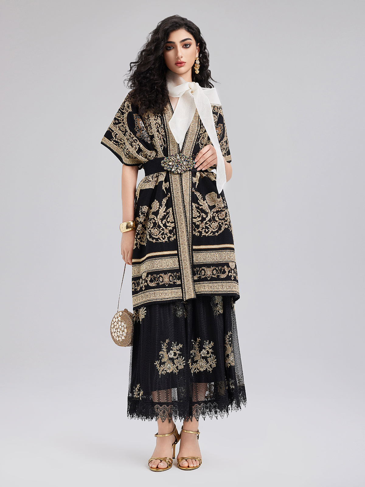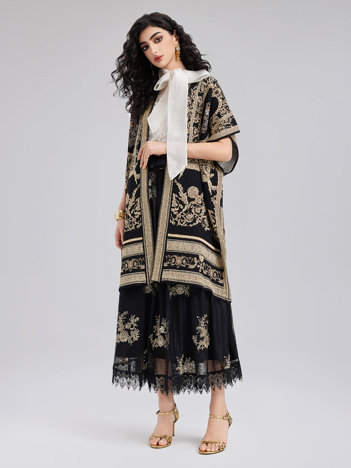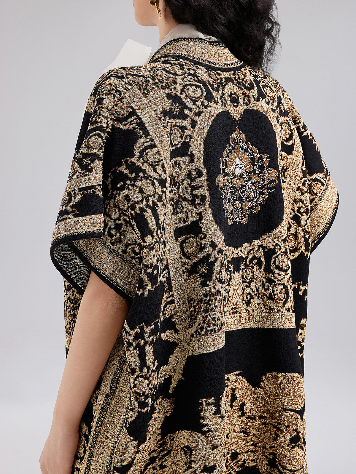 Featuring an elegant, royal-inspired pattern, this cardigan combines luxurious details with high-quality knit fabric for a soft, breathable feel. The chic short-sleeve design offers a modern twist, perfect for both casual and formal occasions, showcasing effortless sophistication.