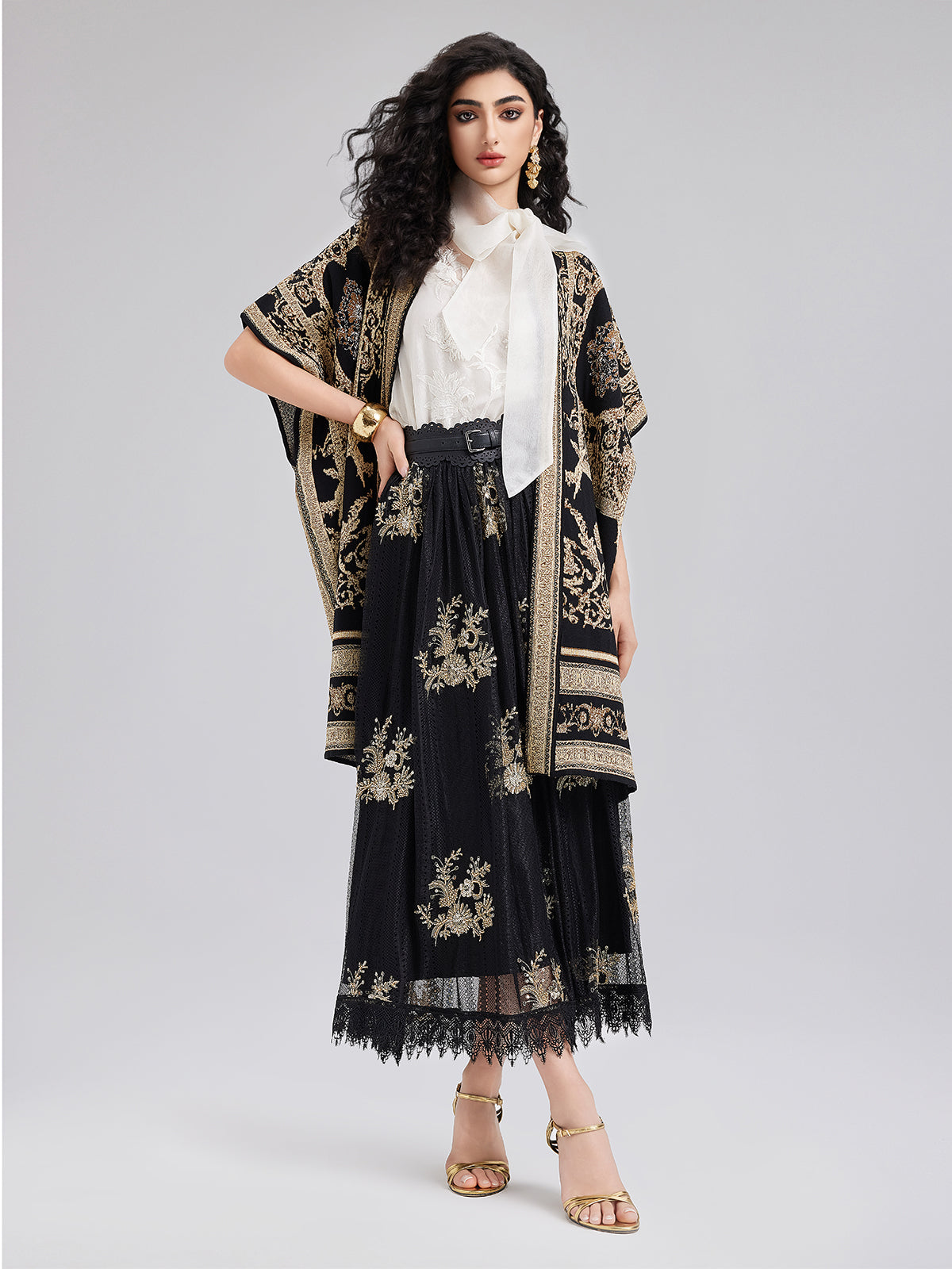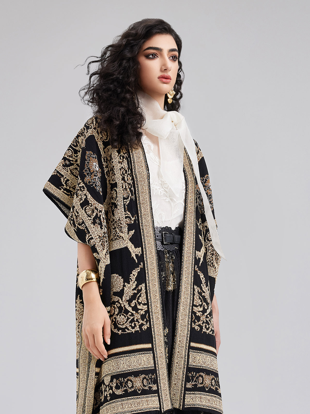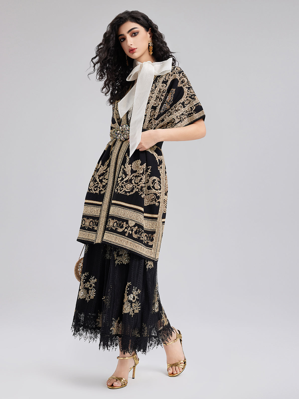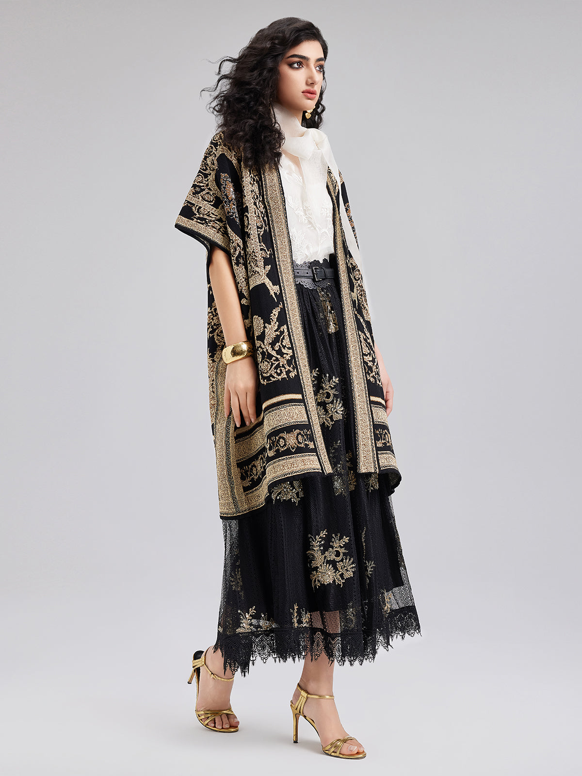 Featuring an elegant, royal-inspired pattern, this cardigan combines luxurious details with high-quality knit fabric for a soft, breathable feel. The chic short-sleeve design offers a modern twist, perfect for both casual and formal occasions, showcasing effortless sophistication.