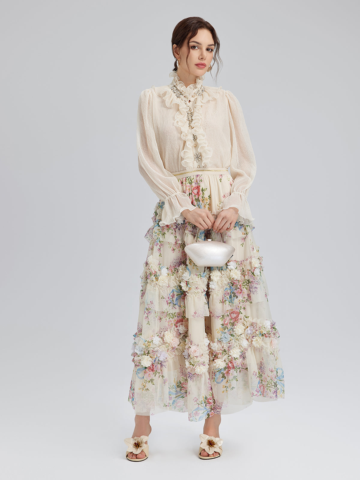 This shirt combines ruffle details with bead embellishments, showcasing a blend of sweetness and luxury. Made from high-quality fabric, it ensures comfort and breathability. Its minimalist design makes it versatile for daily wear, dates, and the workplace, ensuring the wearer stands out.