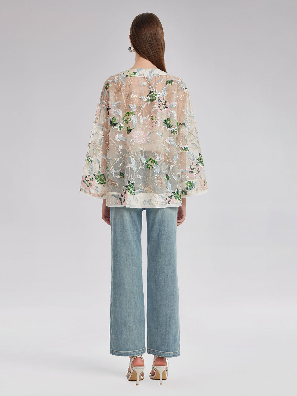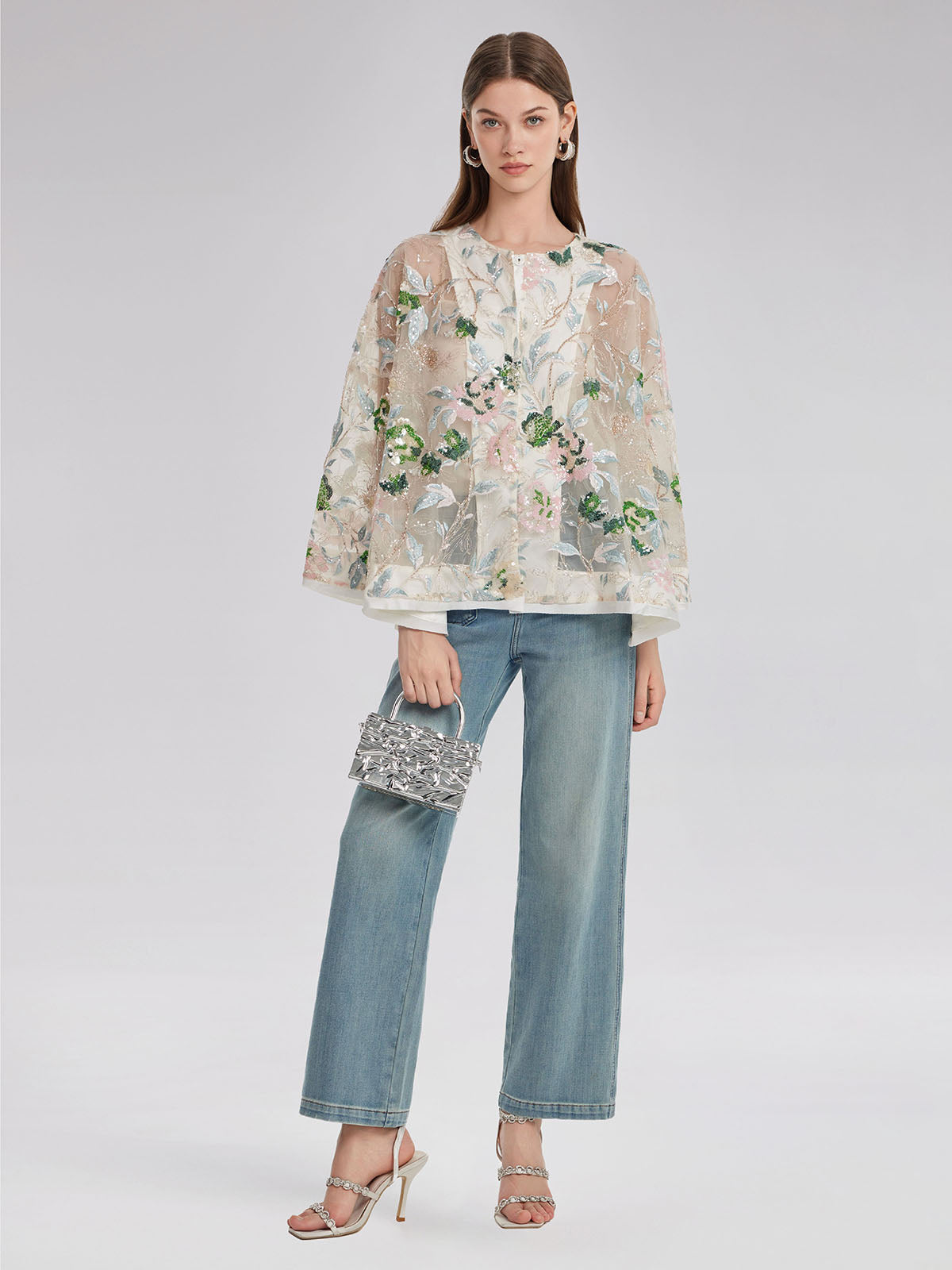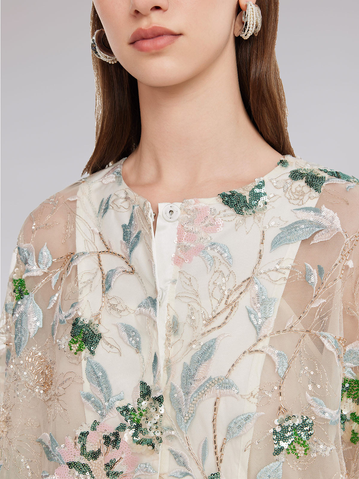 Sequins combined with floral embroidery create a vibrant and delicate design that sparkles in the sunlight, exuding elegance. The loose fit ensures comfort and suits all body types. Perfect for picnics, weekend outings, vacations, and parties.