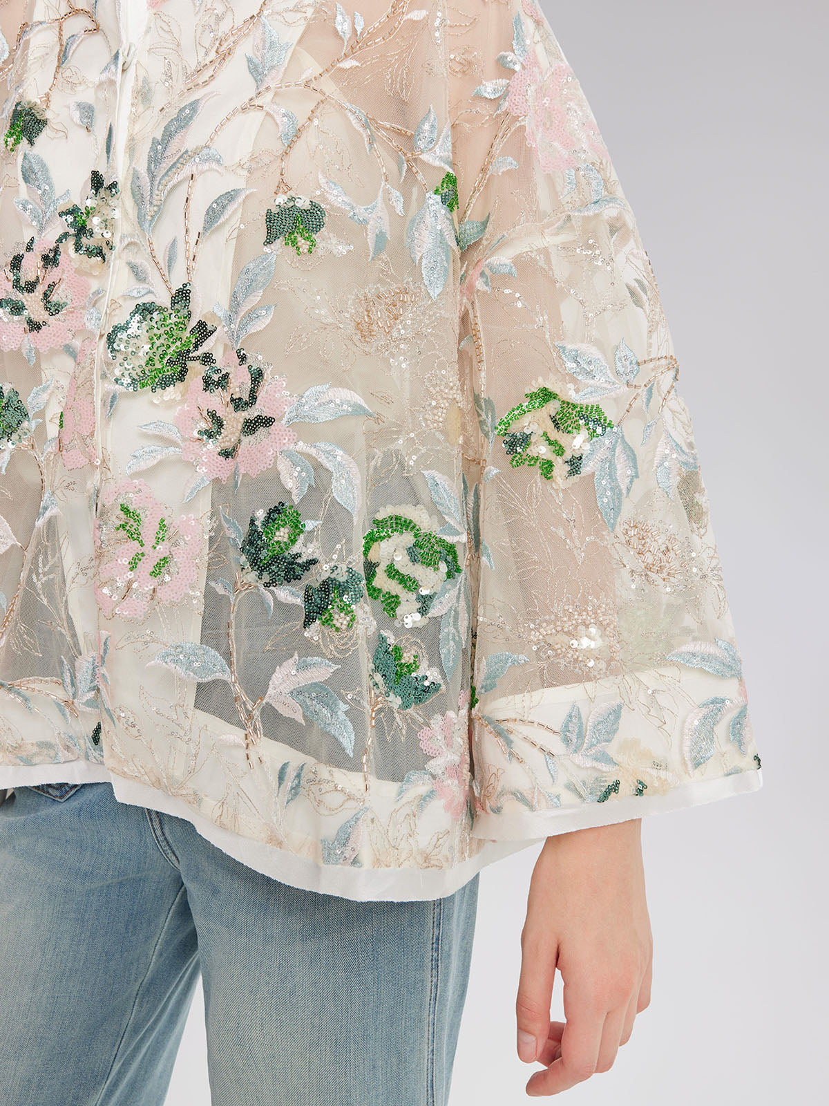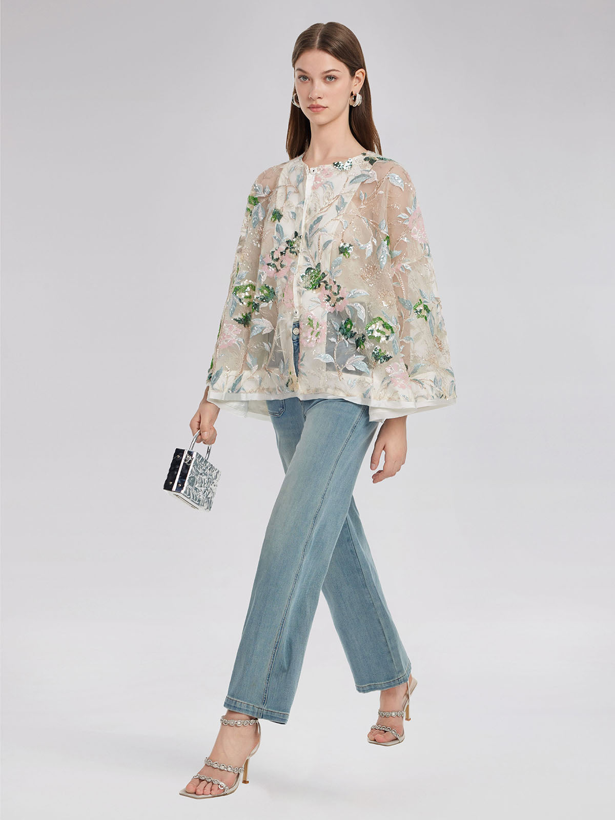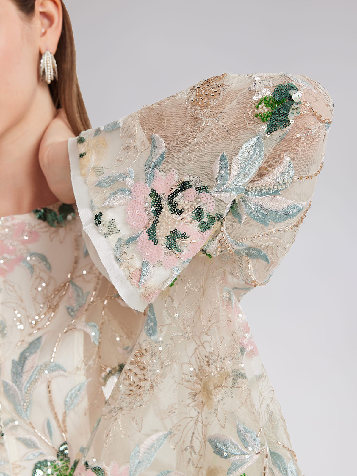 Sequins combined with floral embroidery create a vibrant and delicate design that sparkles in the sunlight, exuding elegance. The loose fit ensures comfort and suits all body types. Perfect for picnics, weekend outings, vacations, and parties.