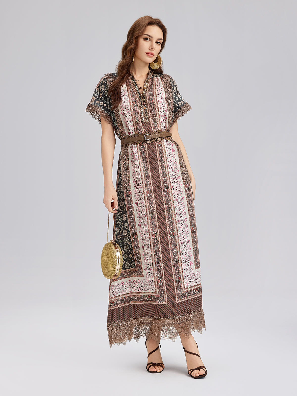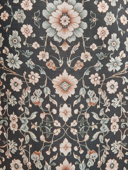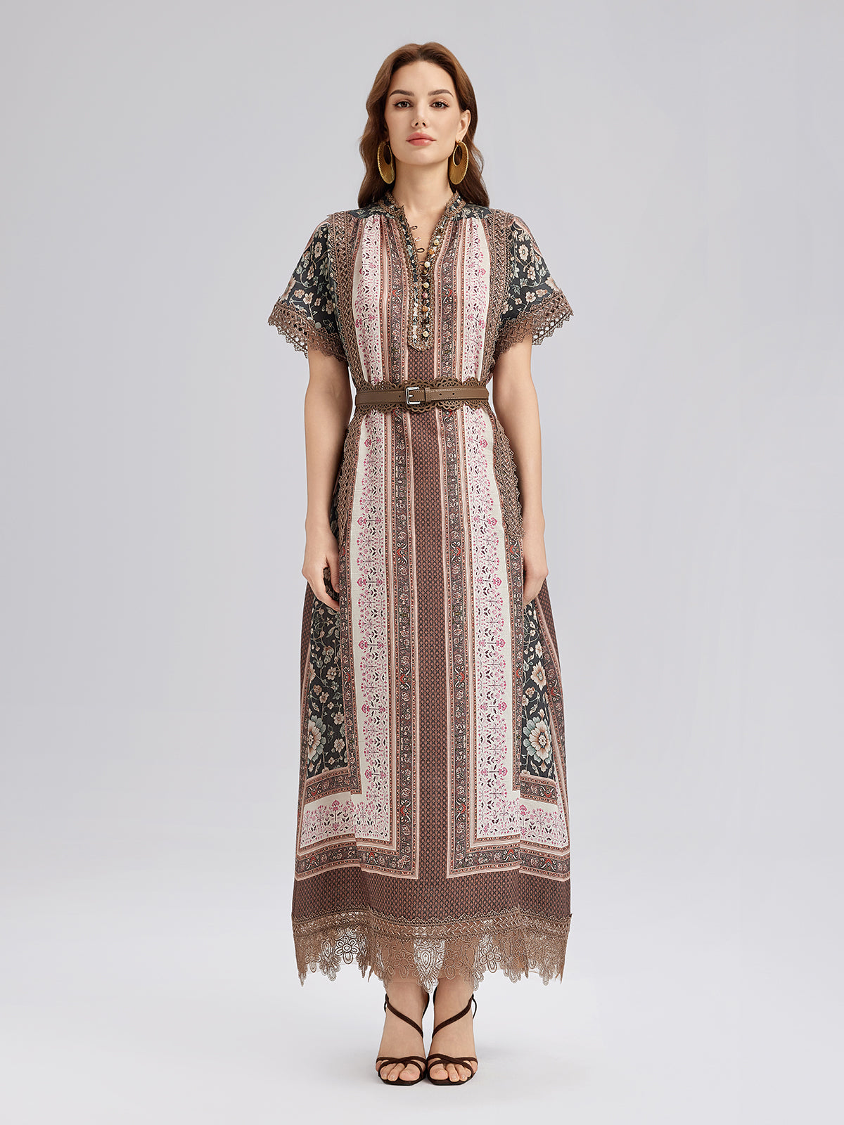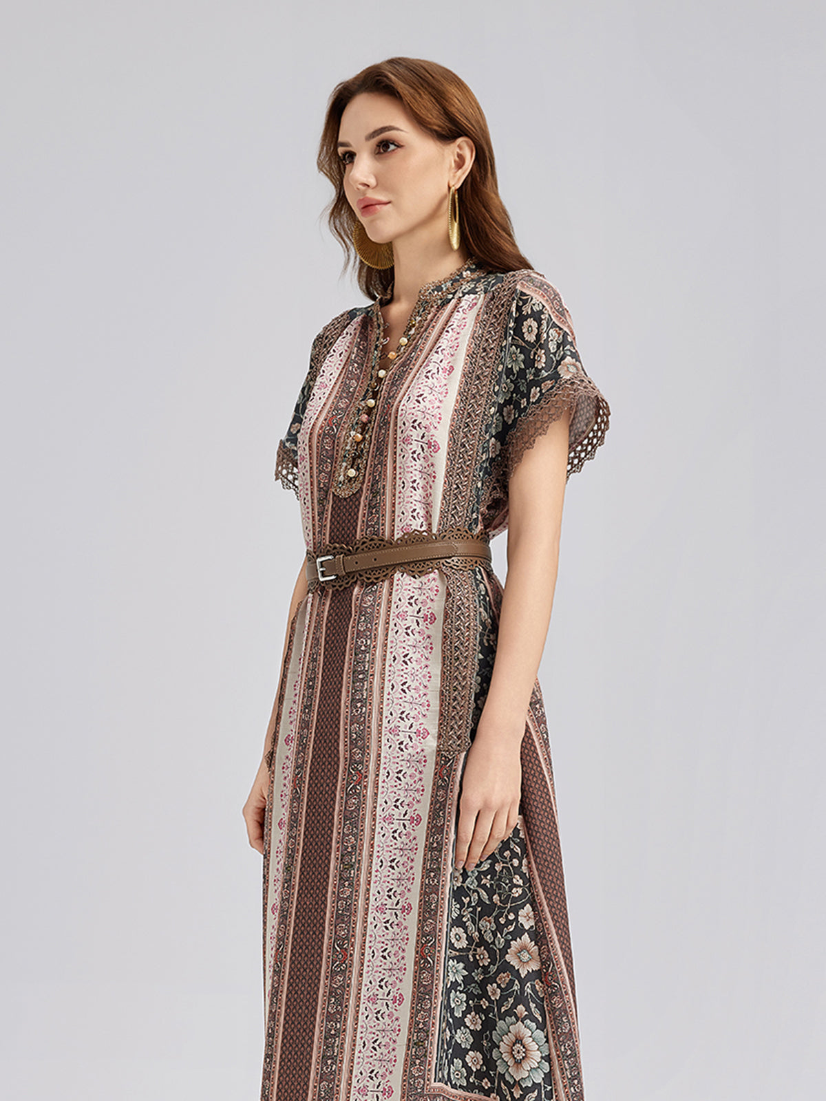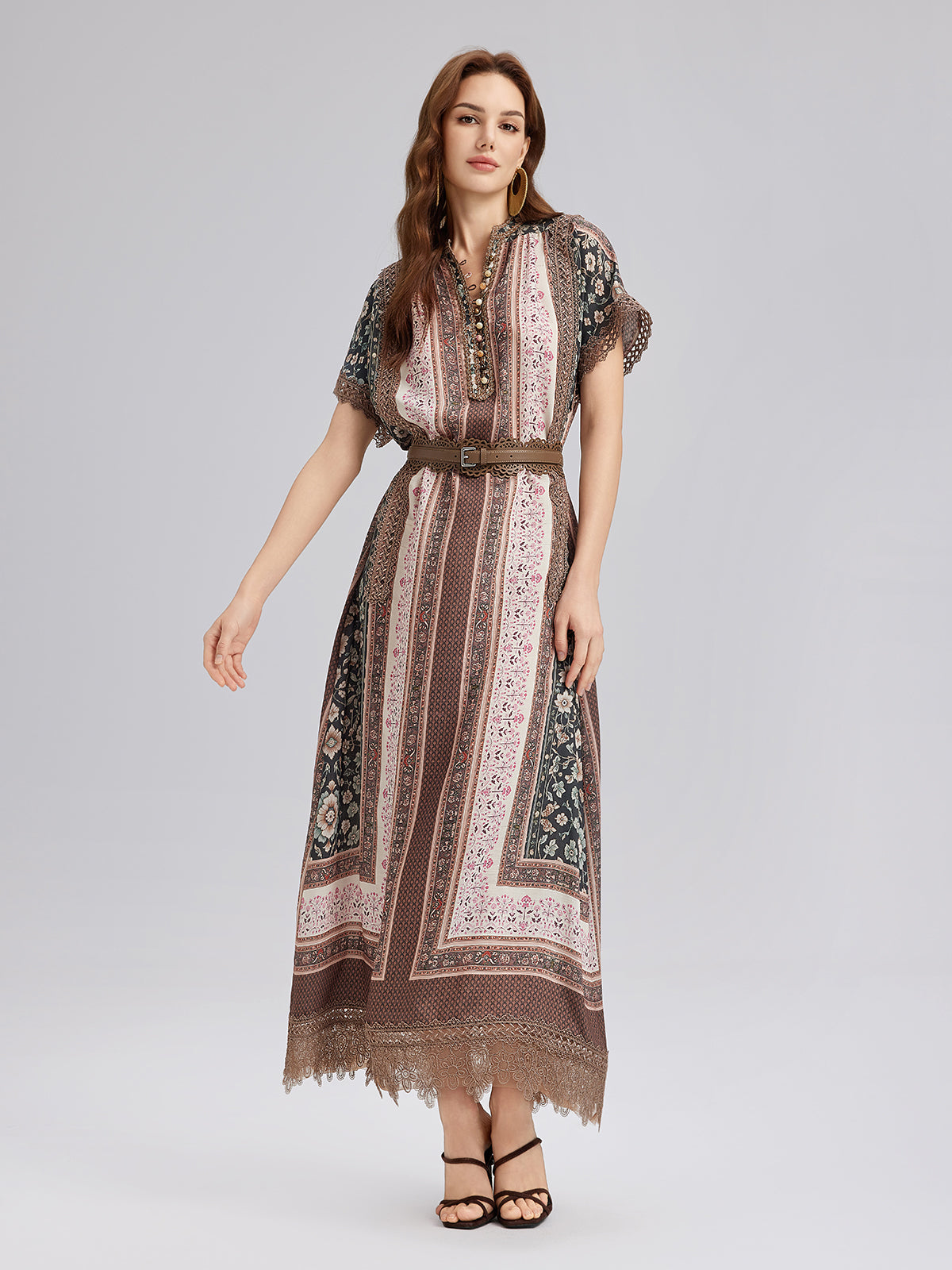 Botanical Print Lace-Trimmed Dress