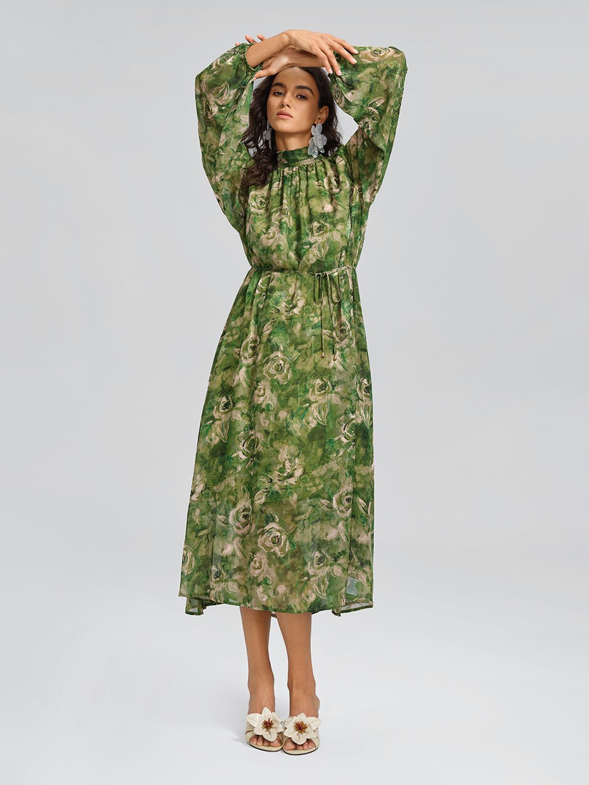 Designed in a relaxed H-line silhouette, this dress offers an easy, inclusive fit. The lightweight fabric feels soft and airy, while the green botanical print evokes fresh seasonal charm. Effortlessly elegant, it transitions from travel and resort days to relaxed social gatherings.
