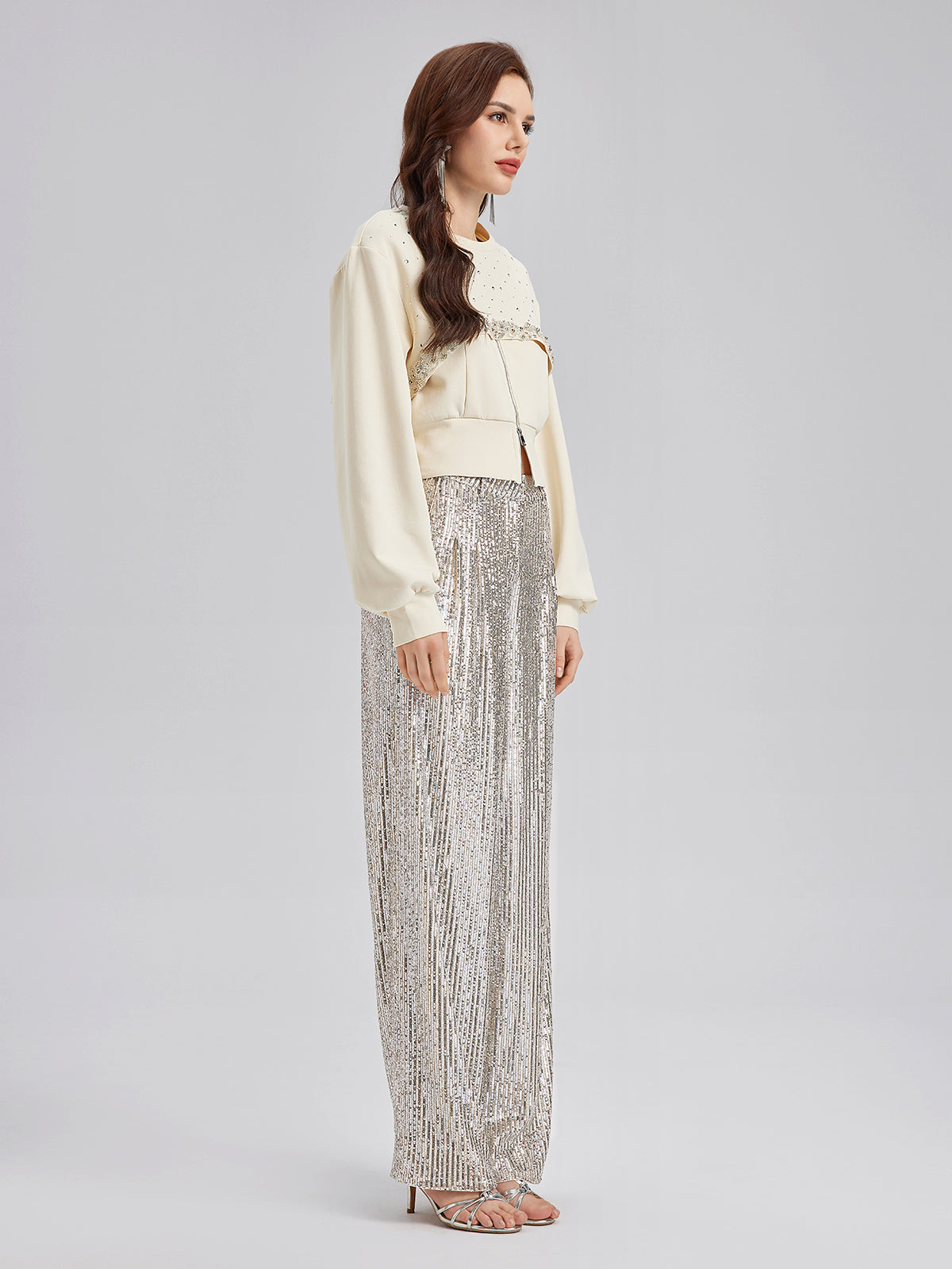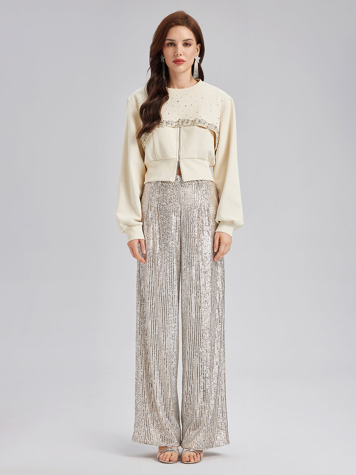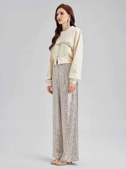 Crafted from high-quality fabric, offering a soft, comfortable feel. Diamond embellishments add shine and gorgeous. The two-piece design offers versatility, while the cropped style creates a flattering, high-waisted effect.