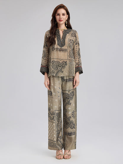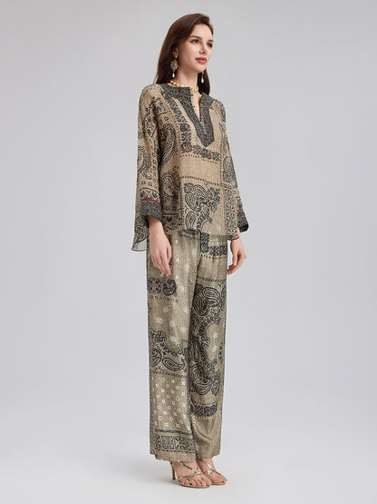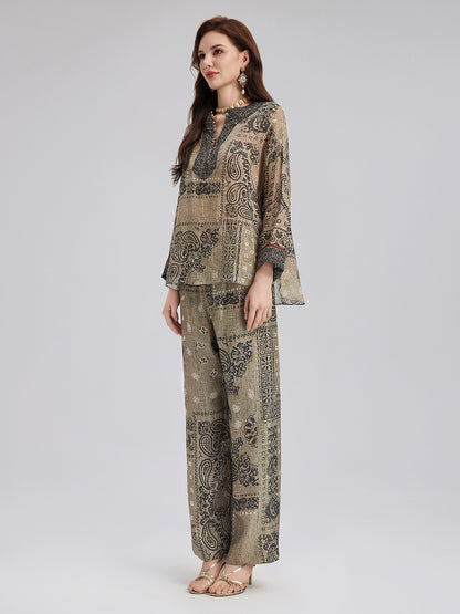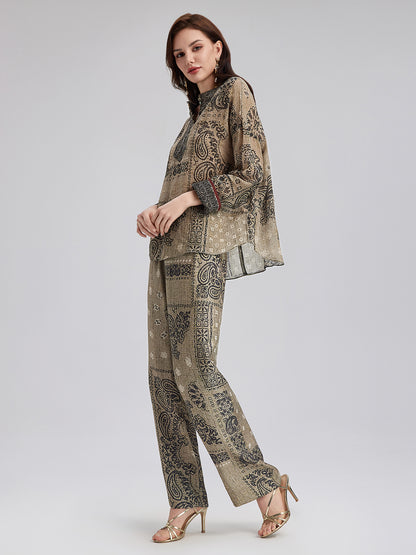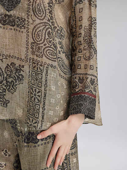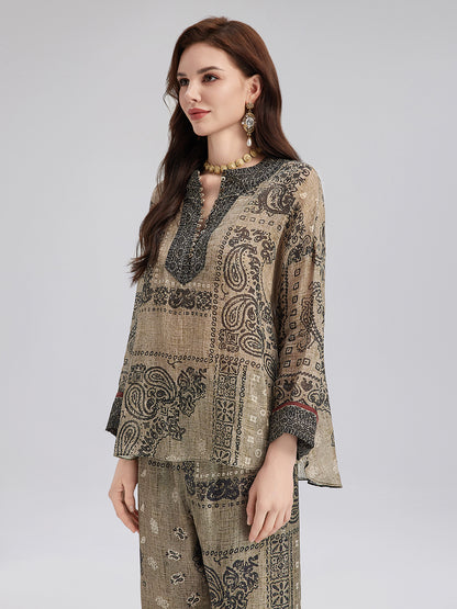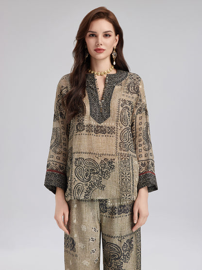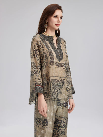 French Ramie Paisley Print Top