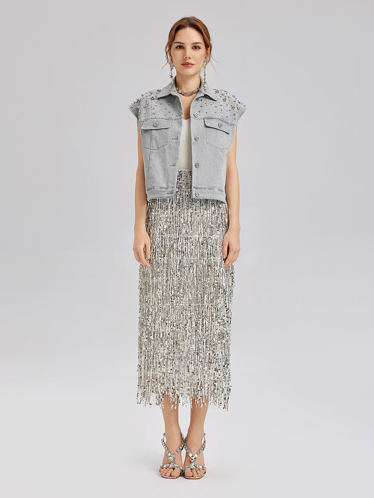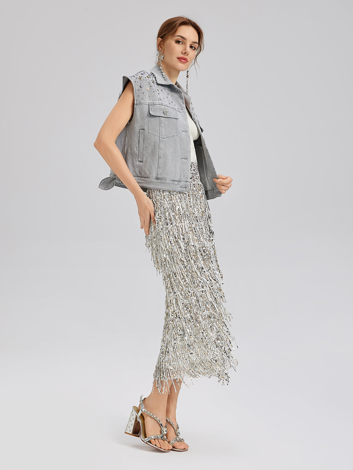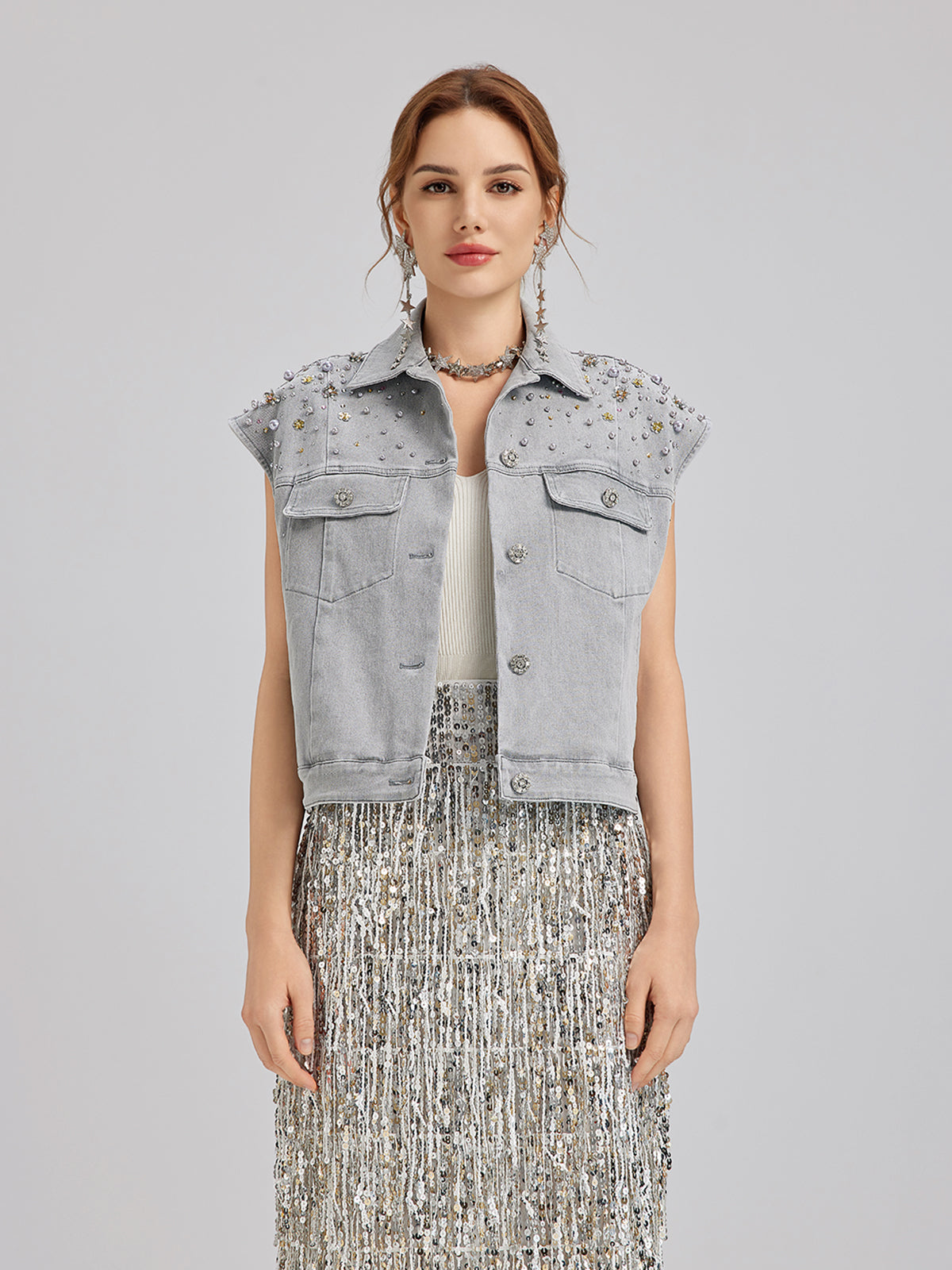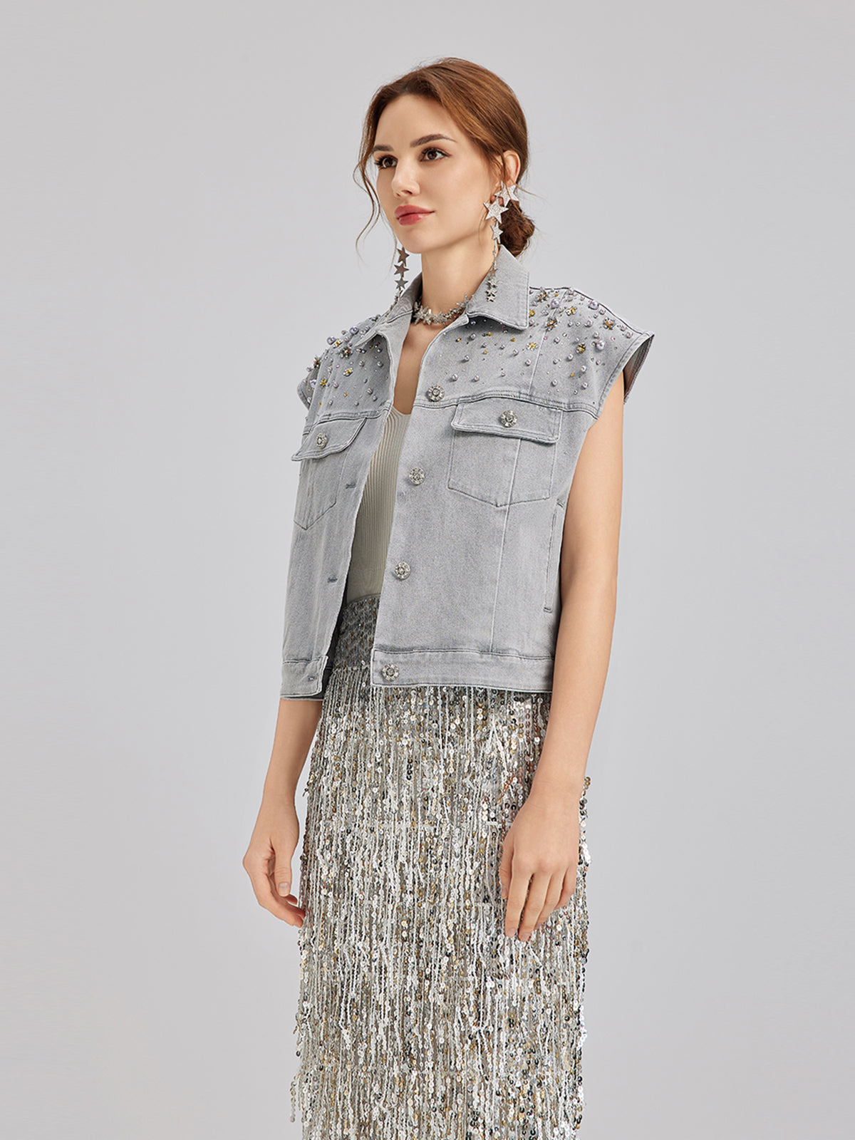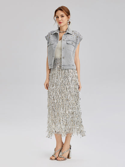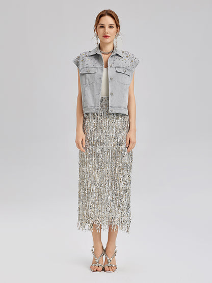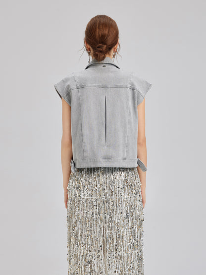 Hand-Beaded Soft Denim Vest