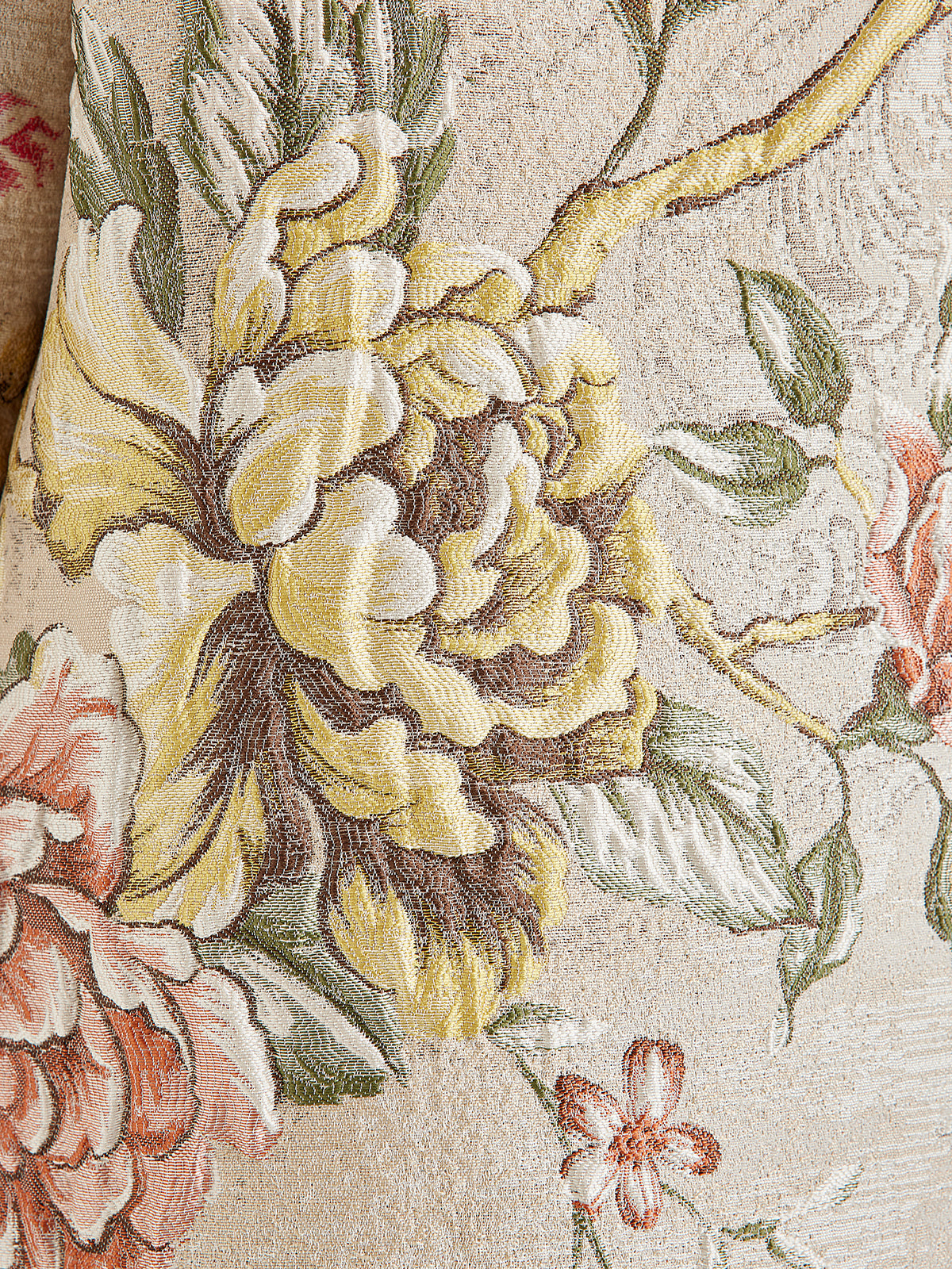 Designed in a classic H-line fit for a flattering silhouette. Hand-sewn beads form intricate 3D floral patterns, complemented by a refined color palette of pink, yellow, and green. The textured jacquard fabric enhances its detailed craftsmanship. Can be worn as both a dress and a jacket.