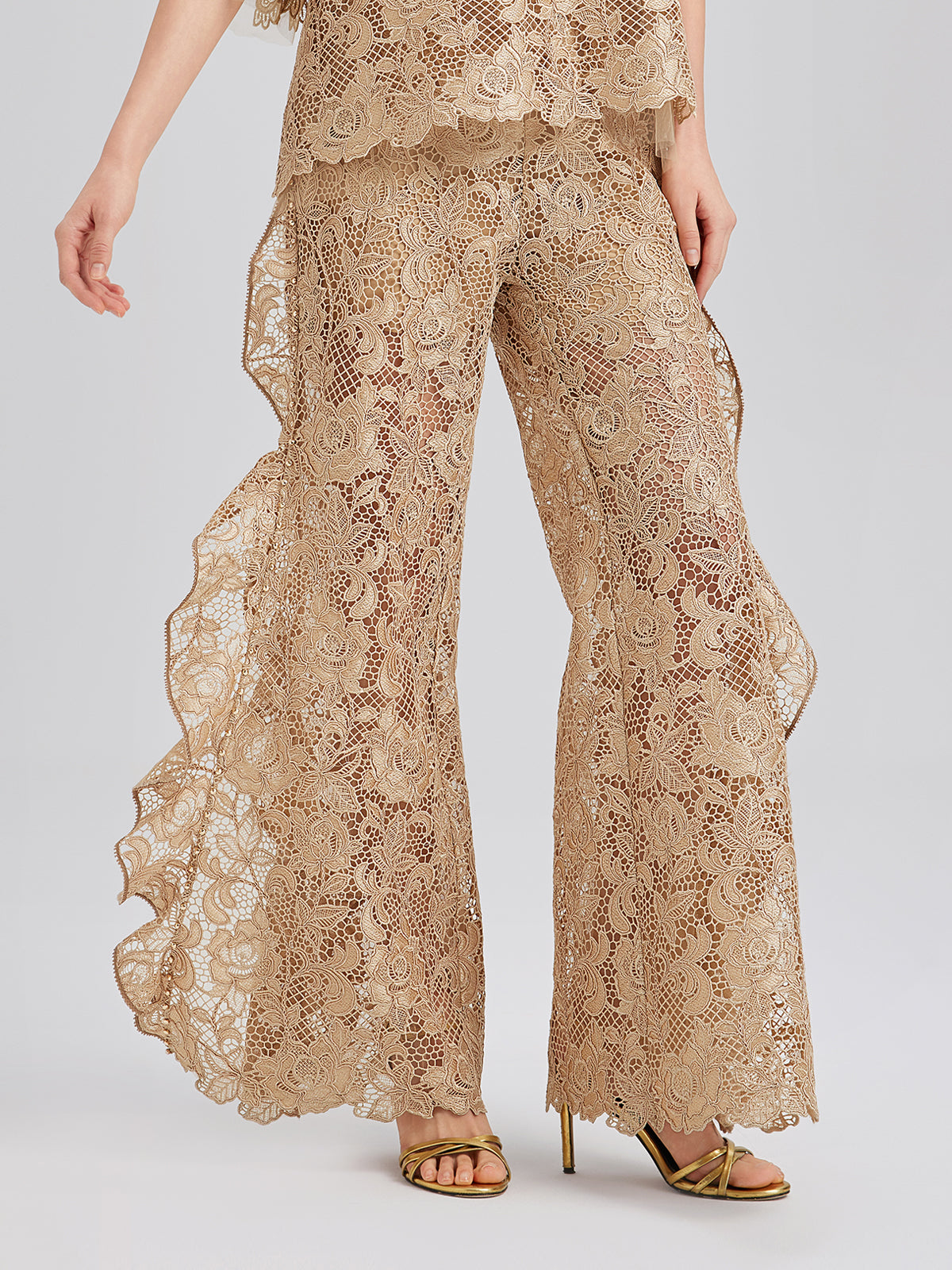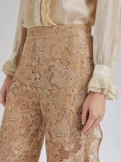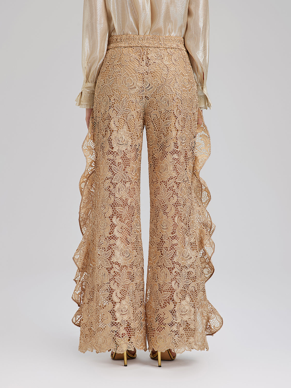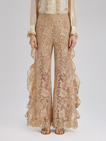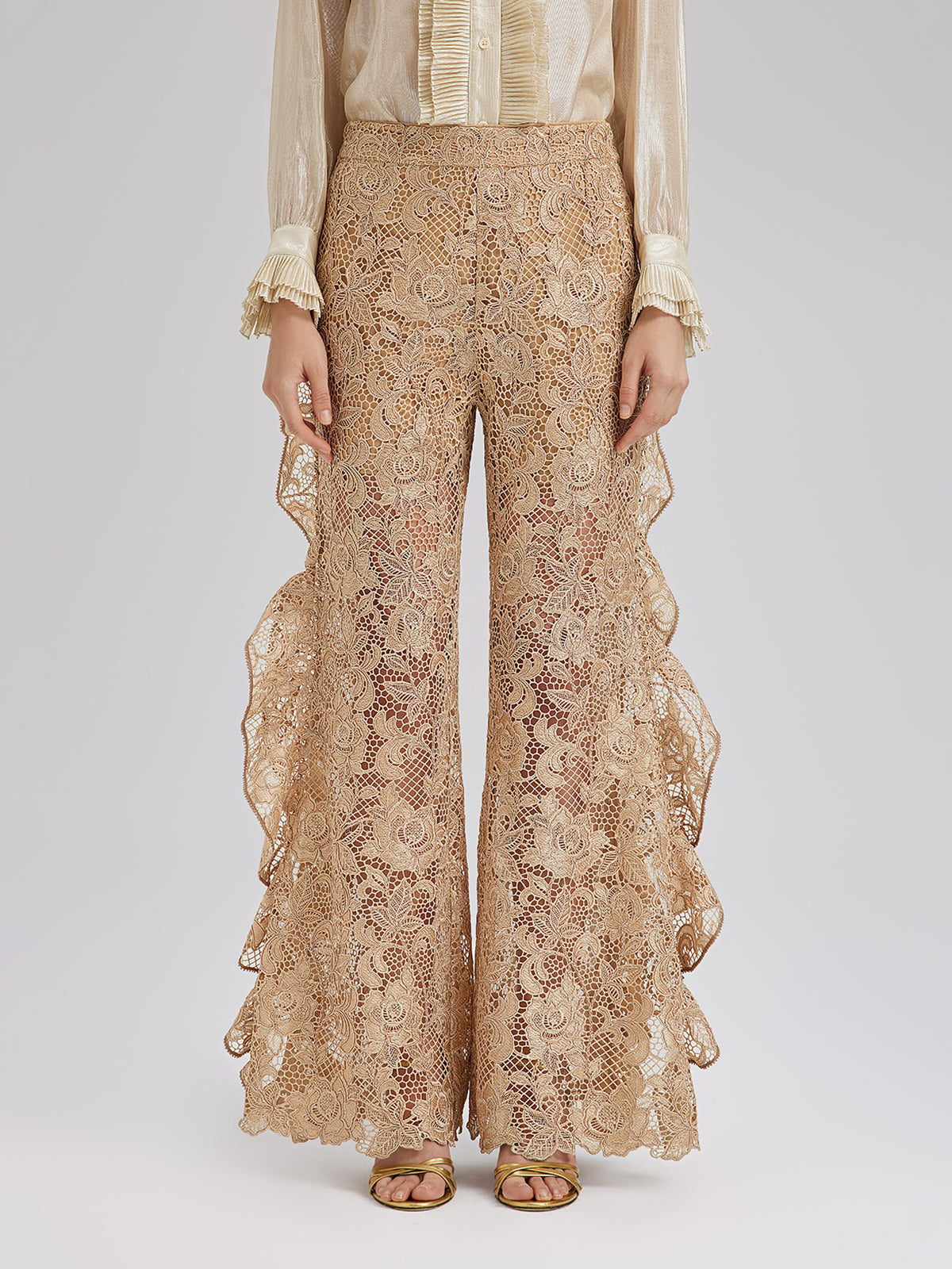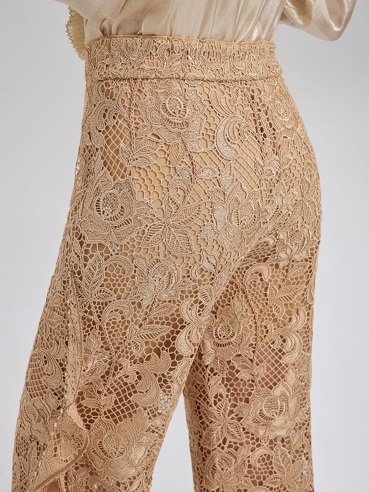 Double-layer ruffled hems flutter like petals with every step. Memory pleats retain their sculptural shape even after washing. The high-waisted flared cut smooths the hips and lengthens the legs, with an elastic back waist and hidden side zip for effortless wear.
