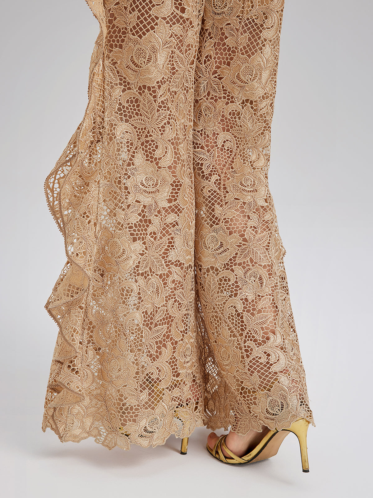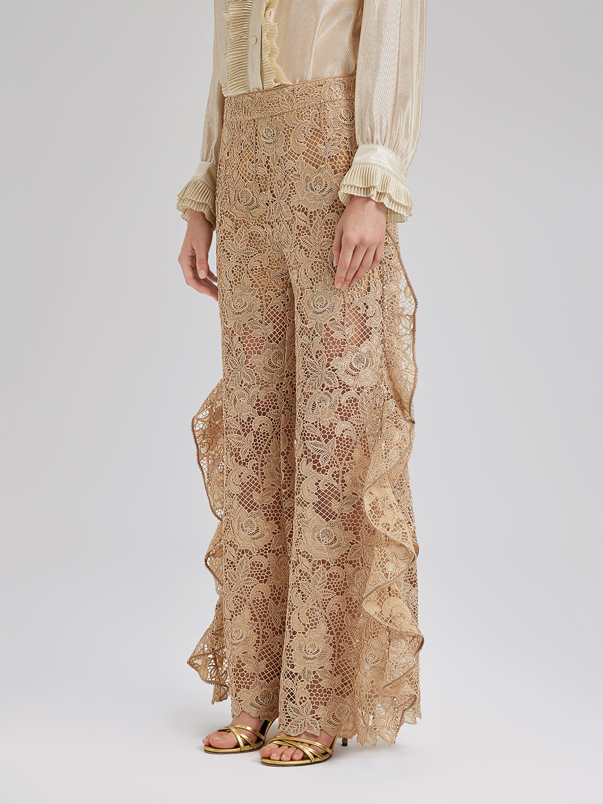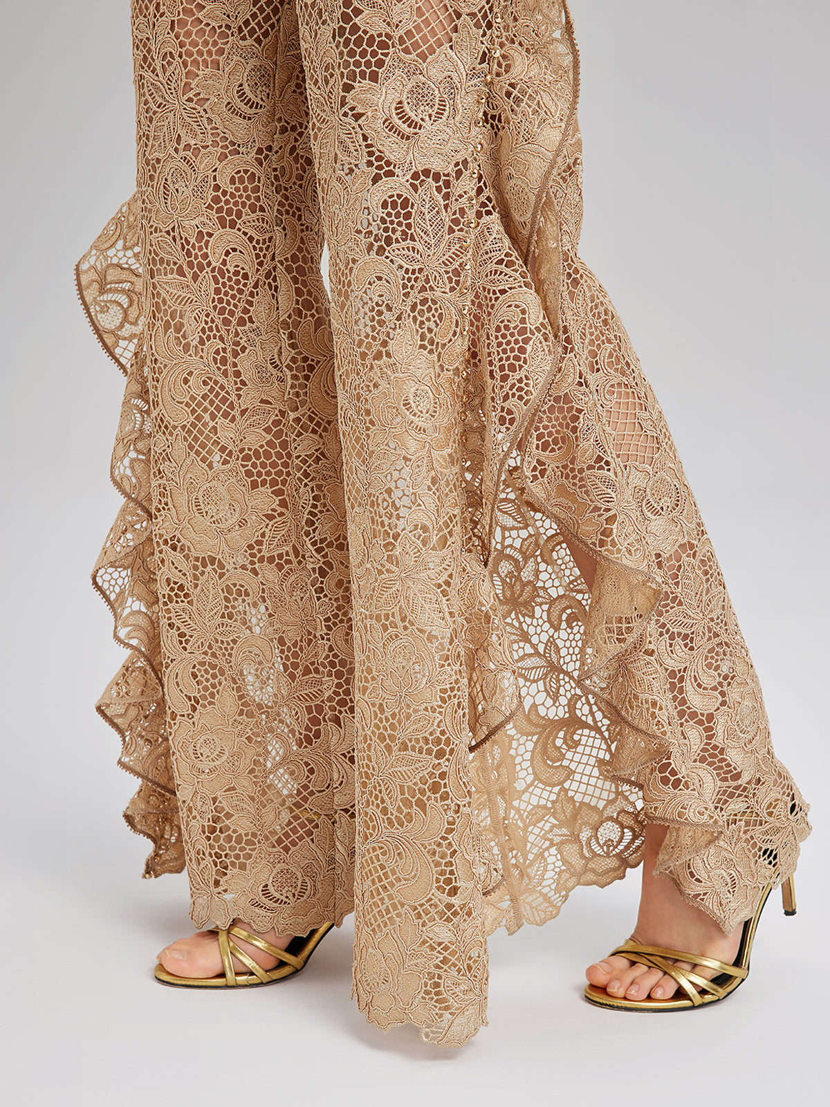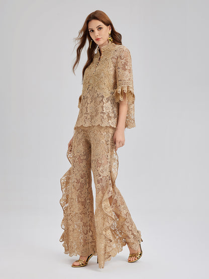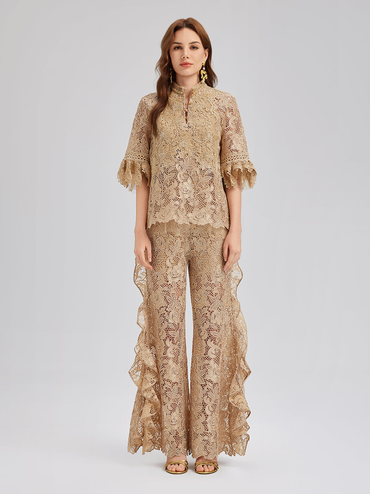 Double-layer ruffled hems flutter like petals with every step. Memory pleats retain their sculptural shape even after washing. The high-waisted flared cut smooths the hips and lengthens the legs, with an elastic back waist and hidden side zip for effortless wear.