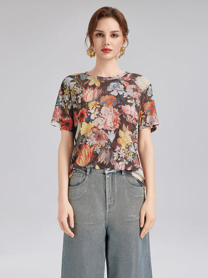 Crafted with high-quality printing technology for vibrant, fade-resistant floral patterns. Made from breathable, stretchy Italian fabric for ultimate comfort, perfect for spring and summer. The simple crew neckline is easy to pair, while the loose fit flatters the figure.