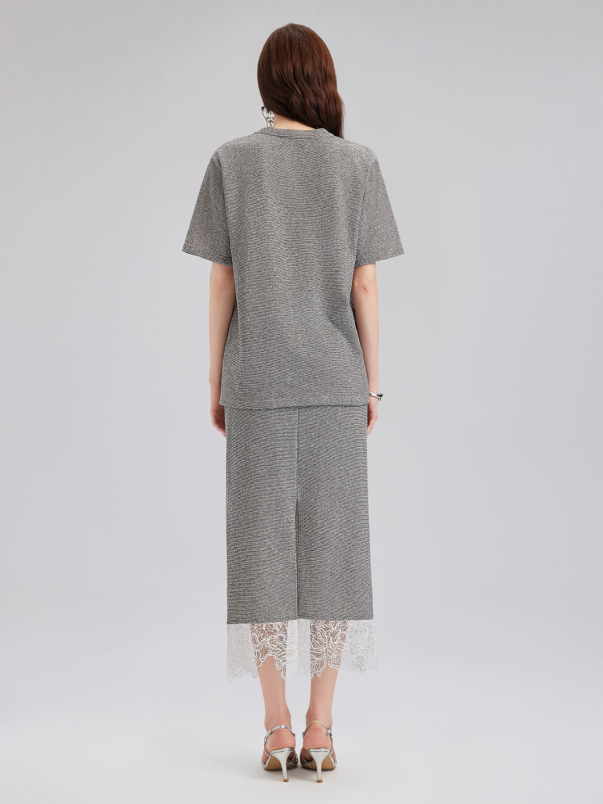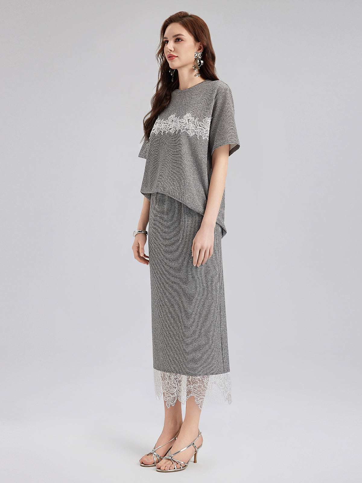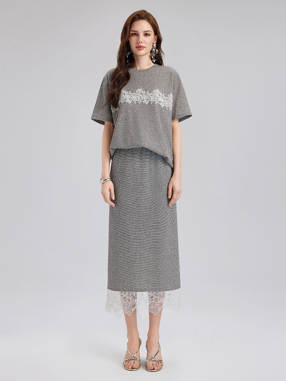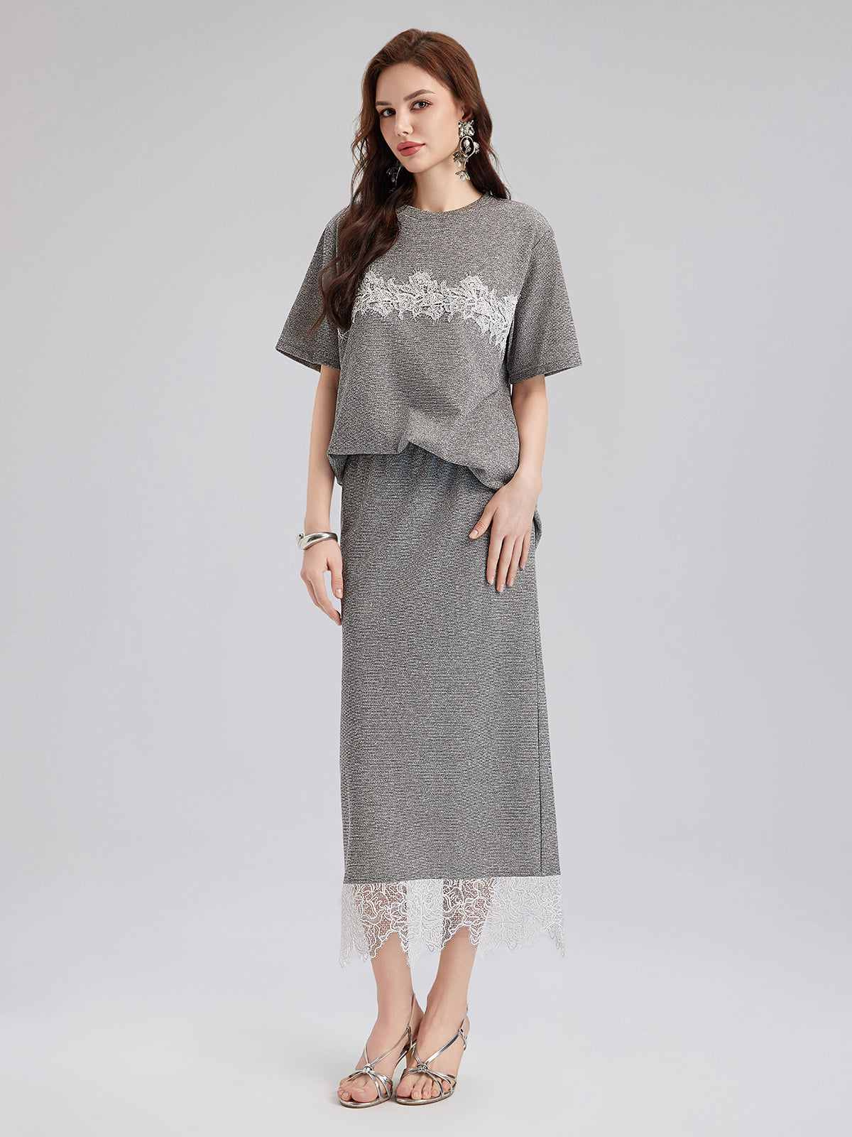 Lace-Trimmed Knit T-Shirt Skirt Set