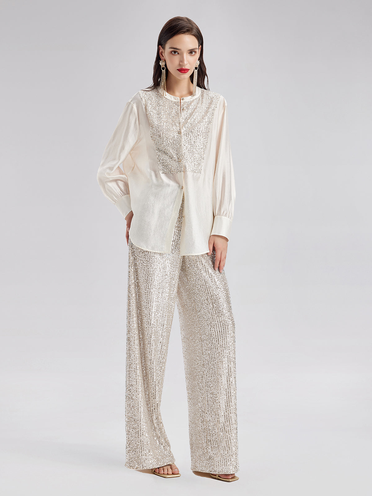 Light Luxury Sequin Wide-Leg Pants