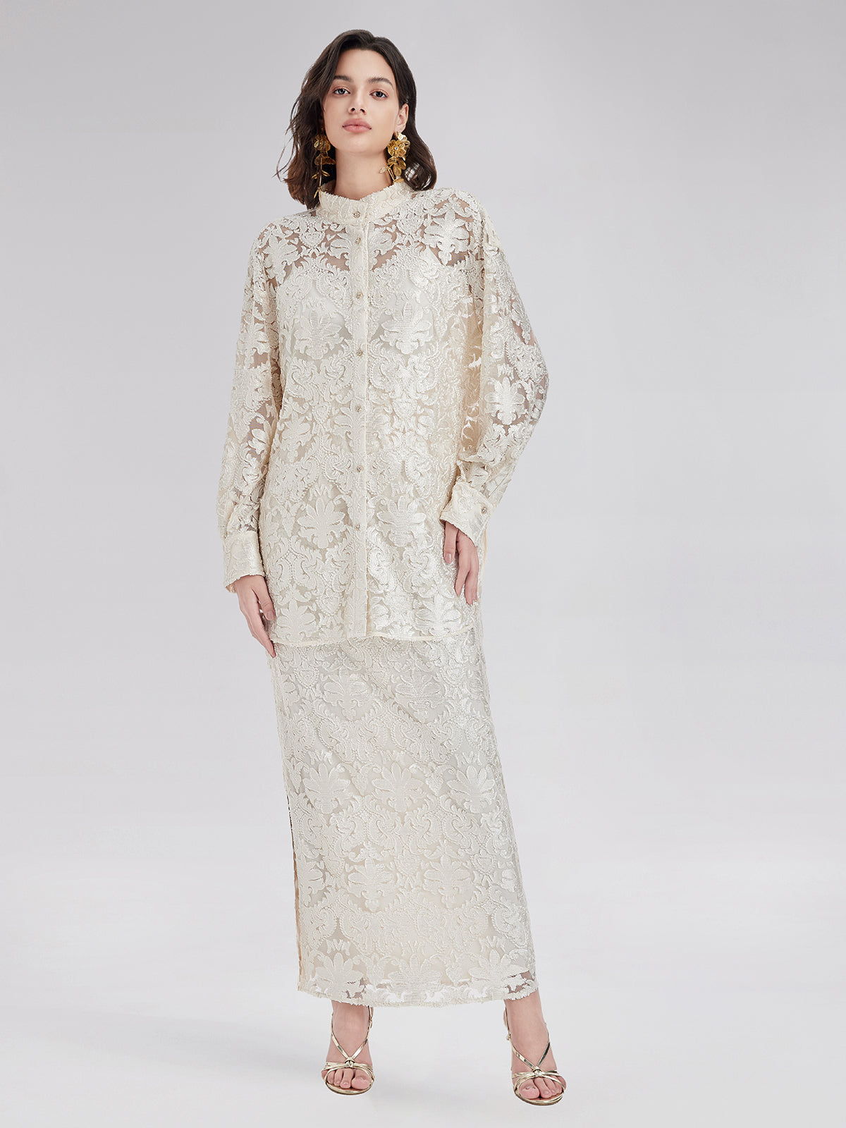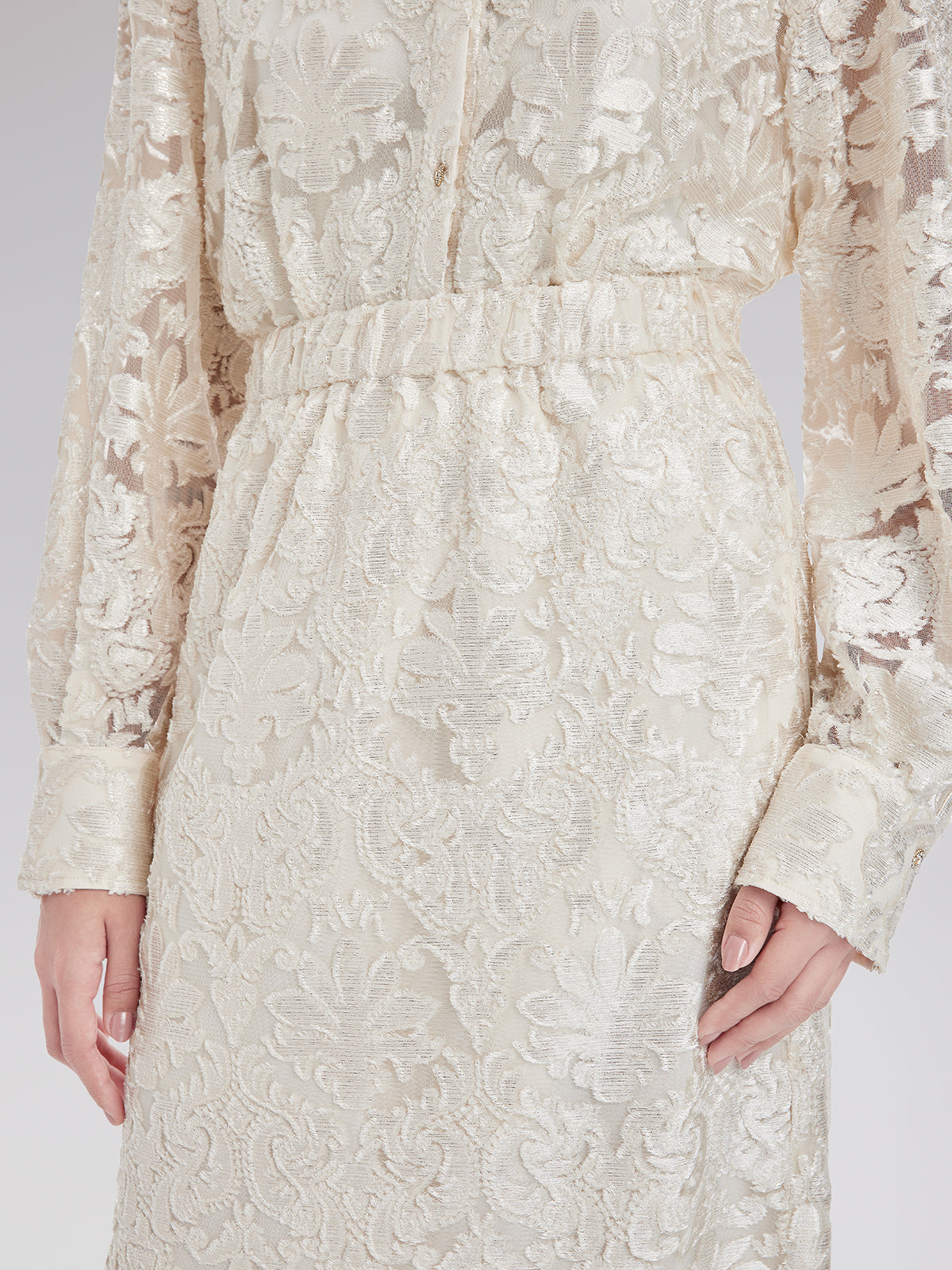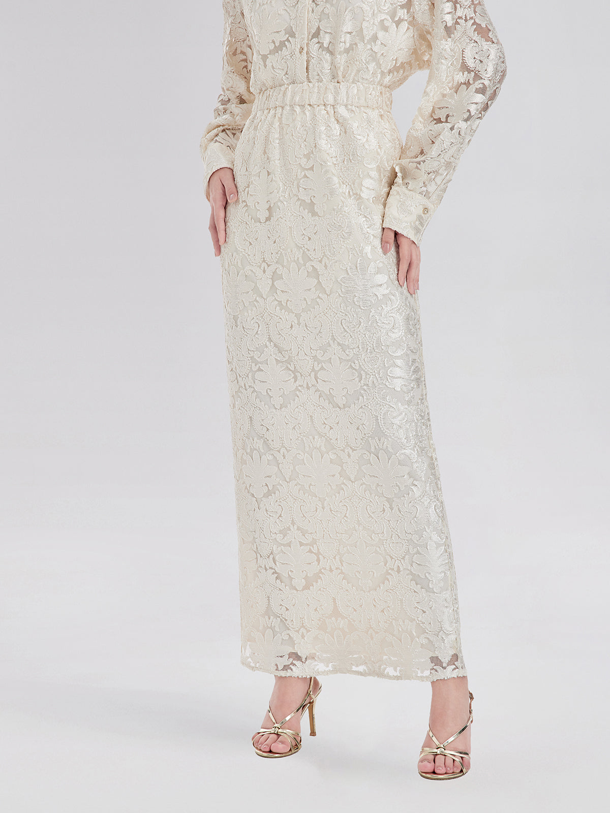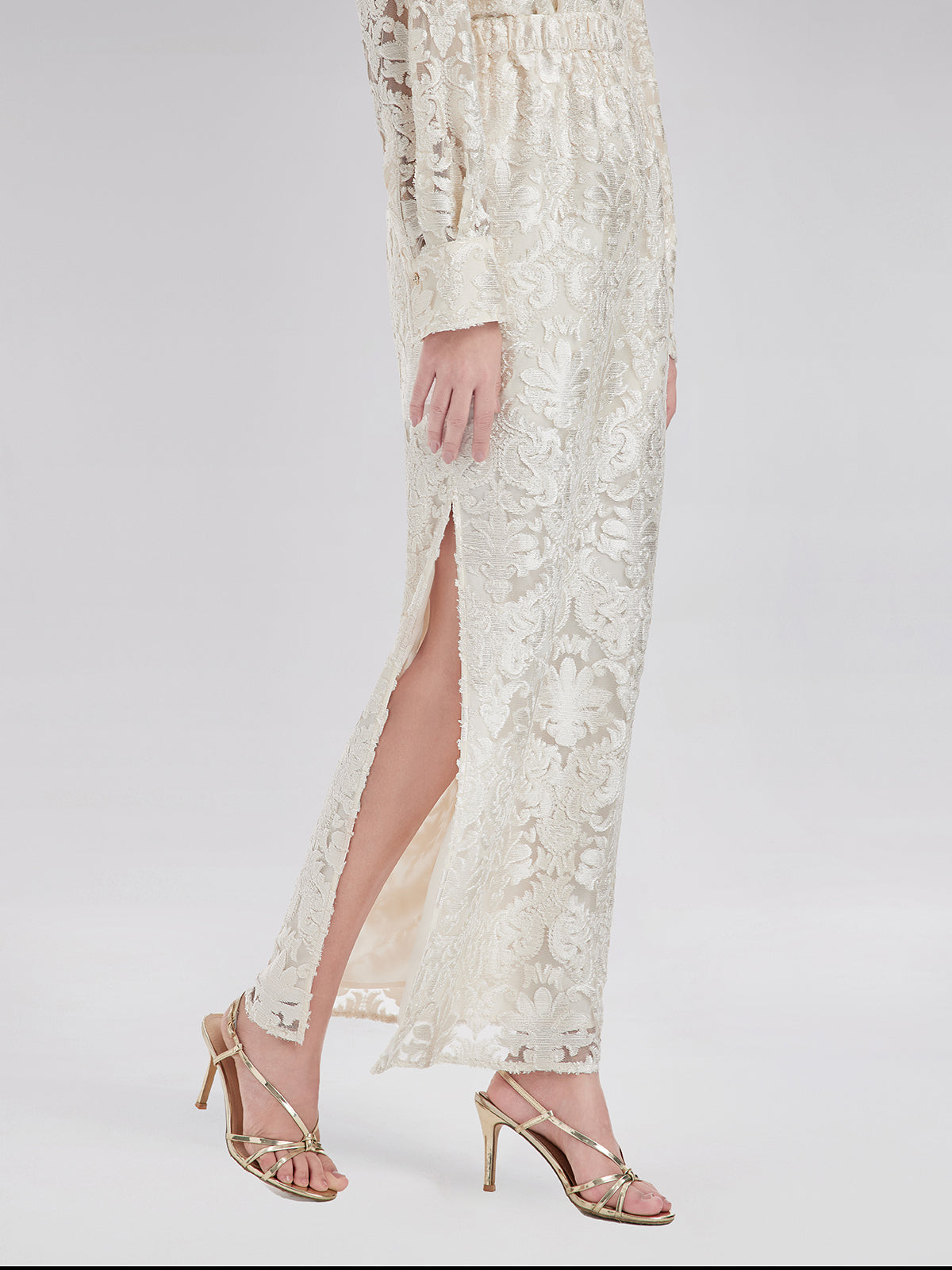 Showcasing exquisite burnout craftsmanship, this skirt delivers a refined, layered visual effect. The side slit adds a touch of elegance while subtly highlighting your leg line, enhancing femininity and allure. With a comfortable elastic waistband, it ensures a perfect fit and ease of wear. Suitable for business meetings, evening events, or casual outings, it offers a unique blend of charm and sophistication.
