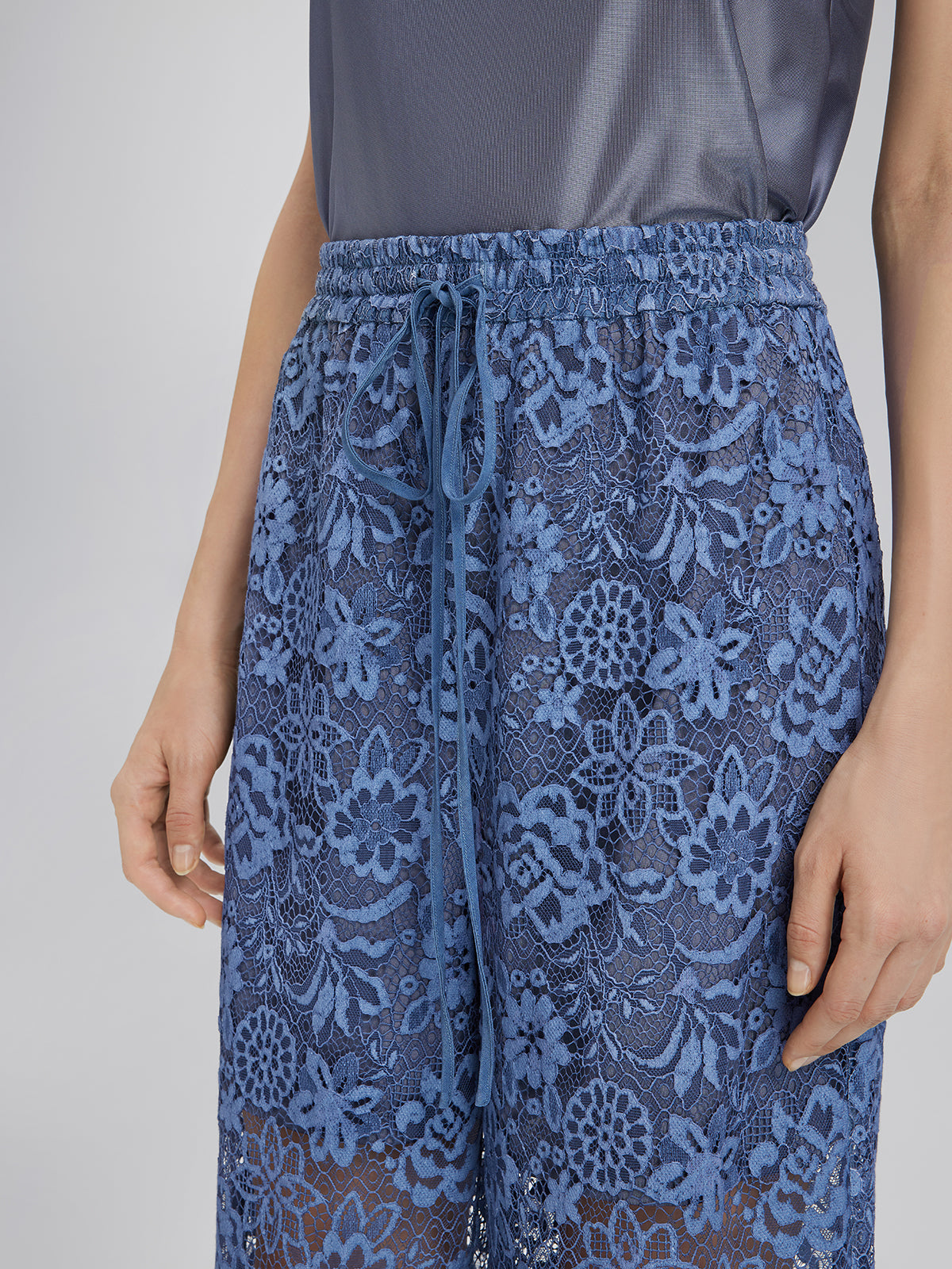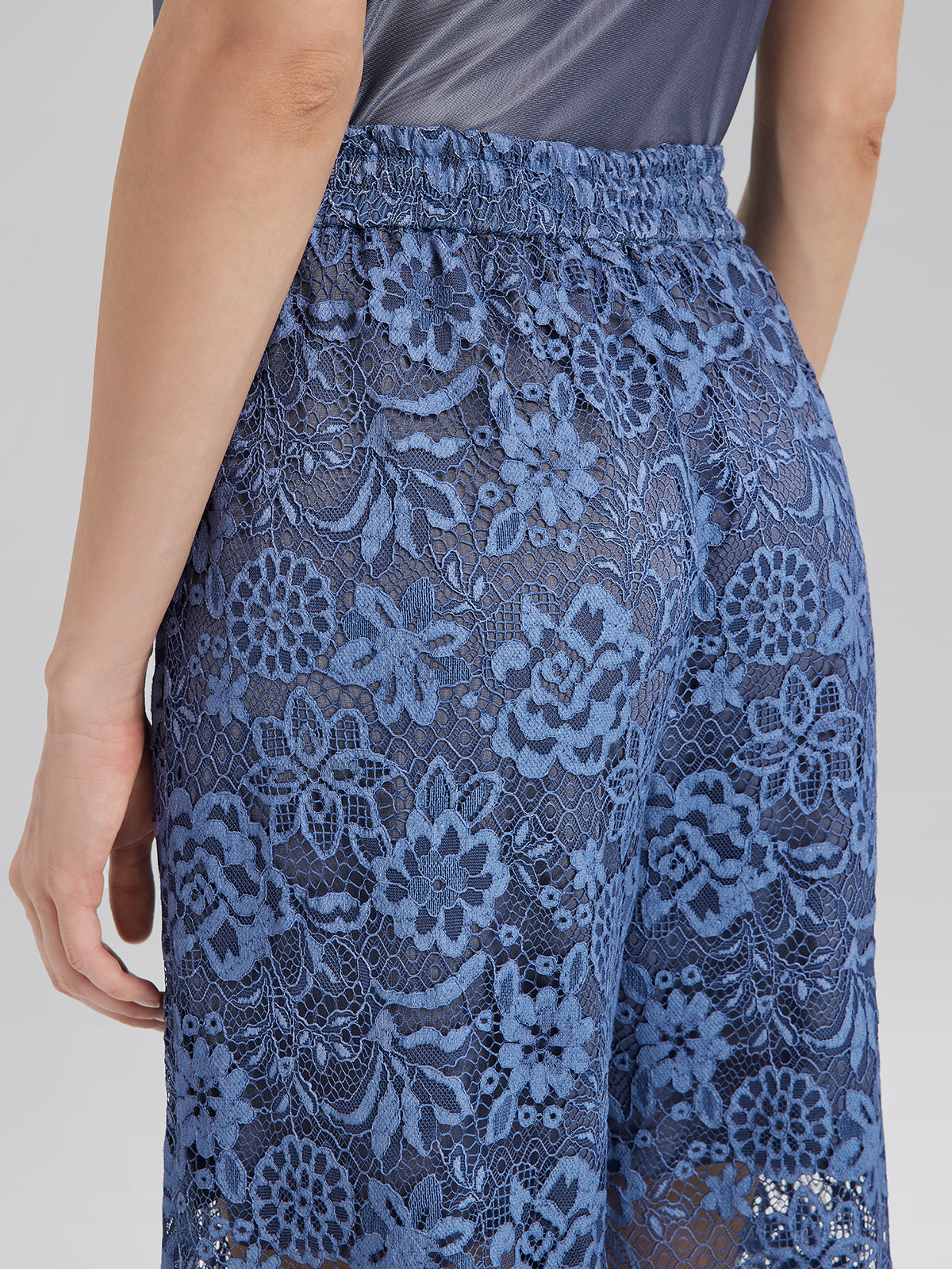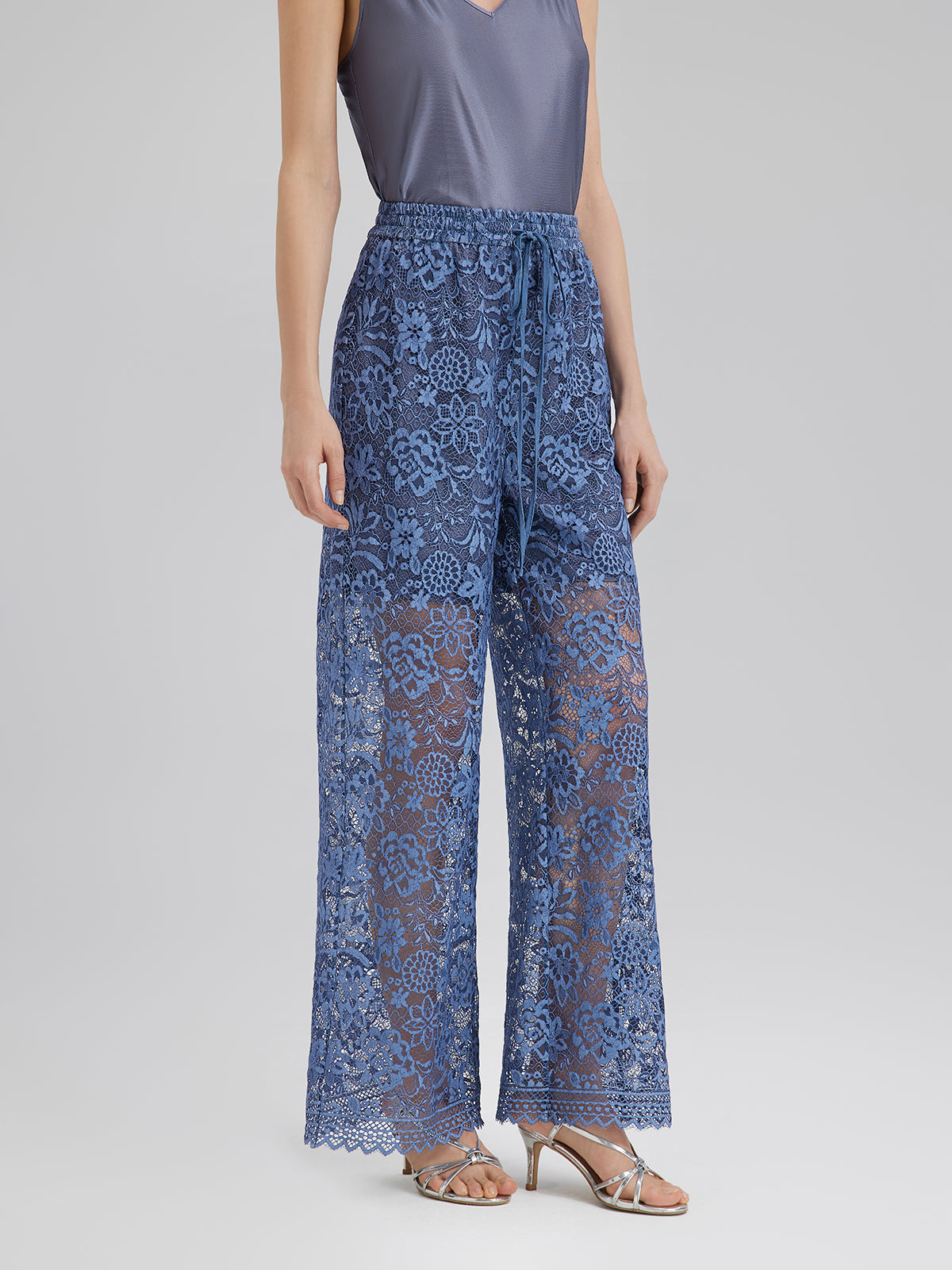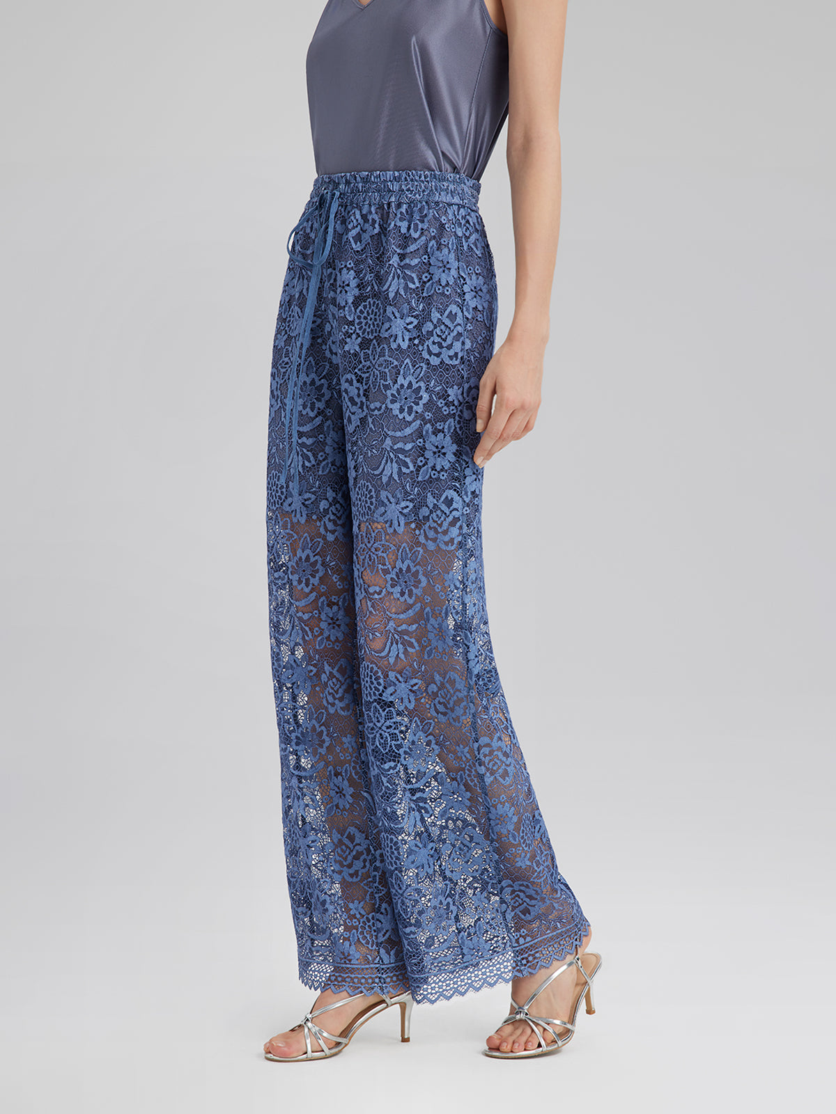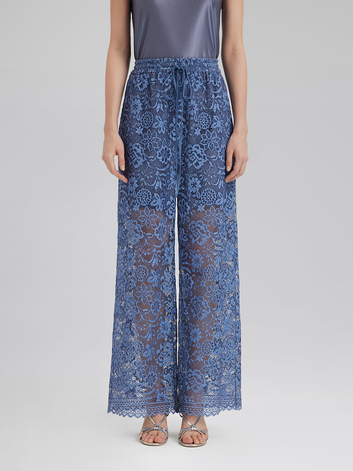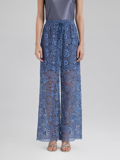 Crafted from openwork lace with sand washing that preserves intricate patterns while adding nostalgic charm. Relaxed fit with an elastic waistband and adjustable drawstring for comfort and a perfect fit. Lace details at the hem highlight the fabric’s original beauty. The sand washing process softens the fabric for a cozy, lived-in feel.