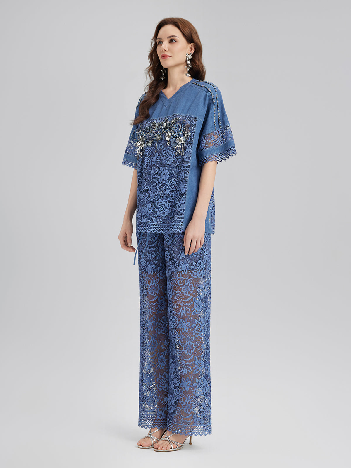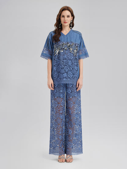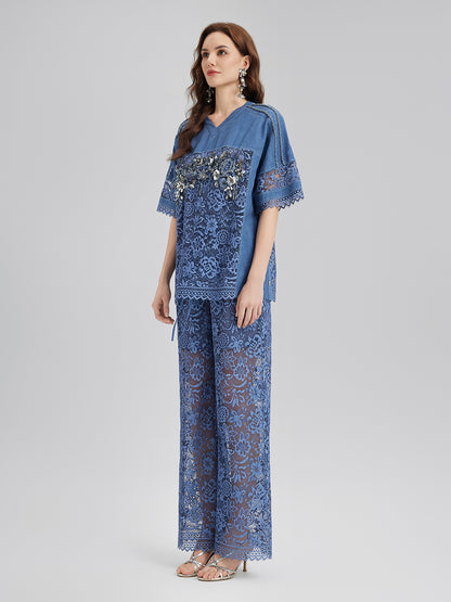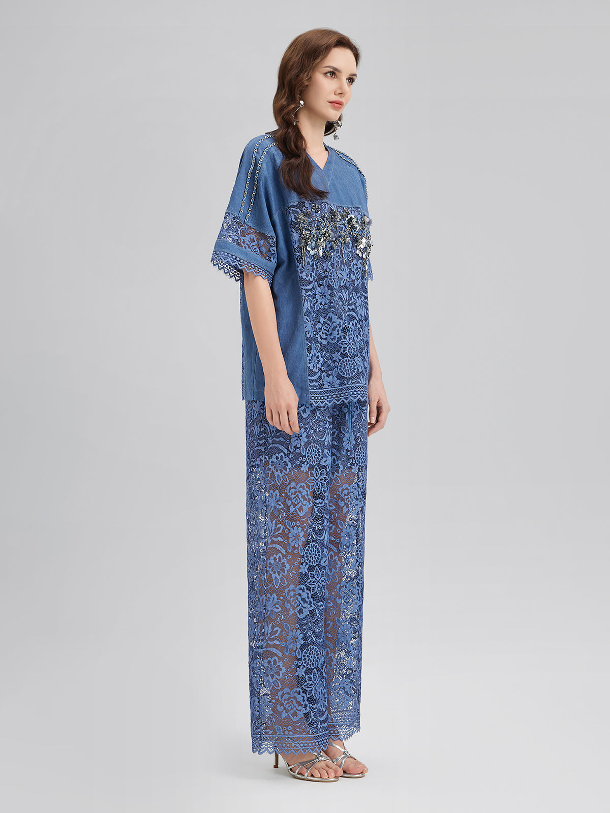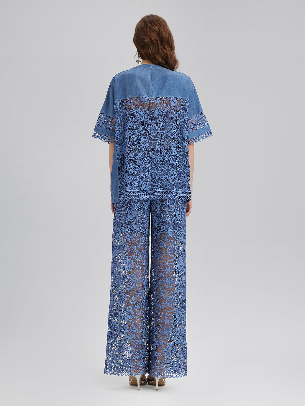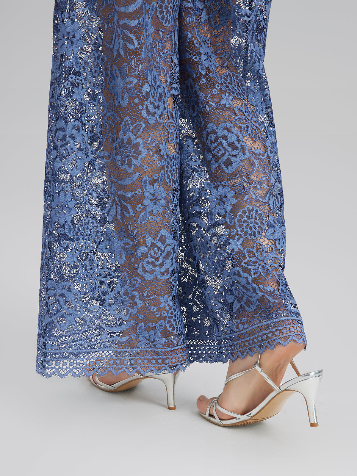 Crafted from openwork lace with sand washing that preserves intricate patterns while adding nostalgic charm. Relaxed fit with an elastic waistband and adjustable drawstring for comfort and a perfect fit. Lace details at the hem highlight the fabric’s original beauty. The sand washing process softens the fabric for a cozy, lived-in feel.