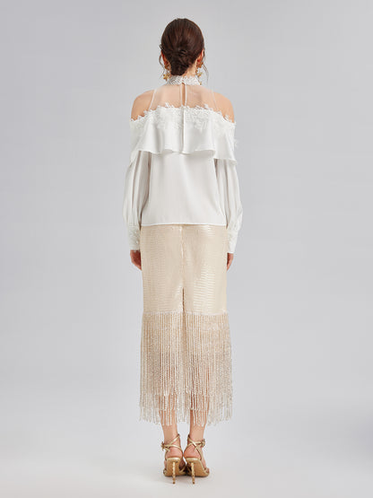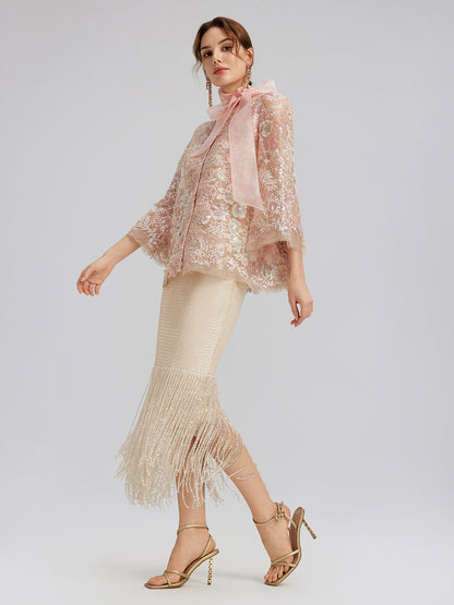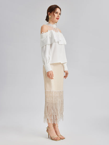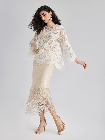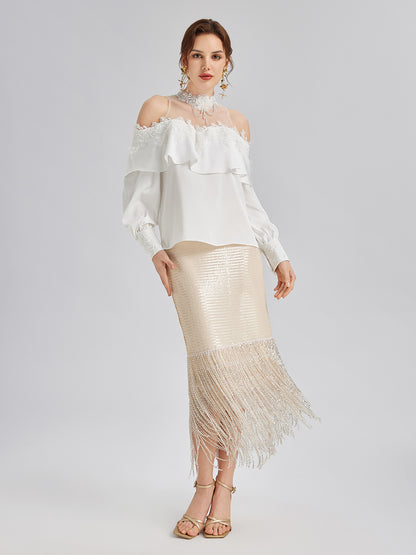 Sequin Crystal Fringe Split Skirt