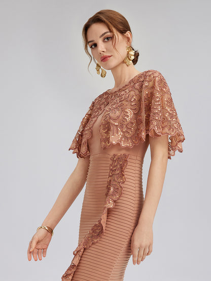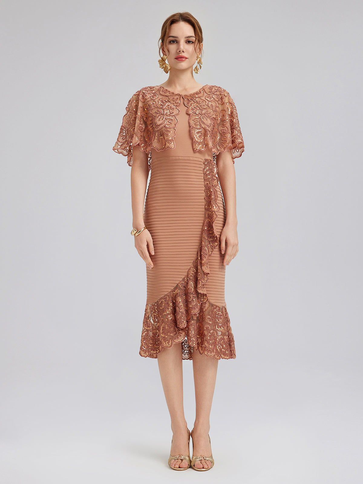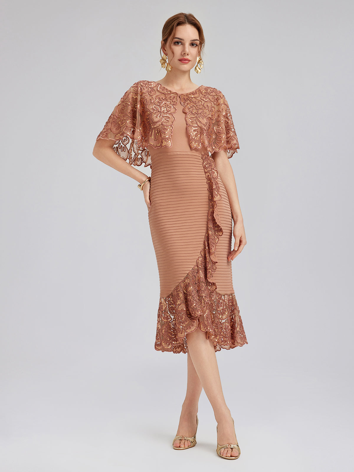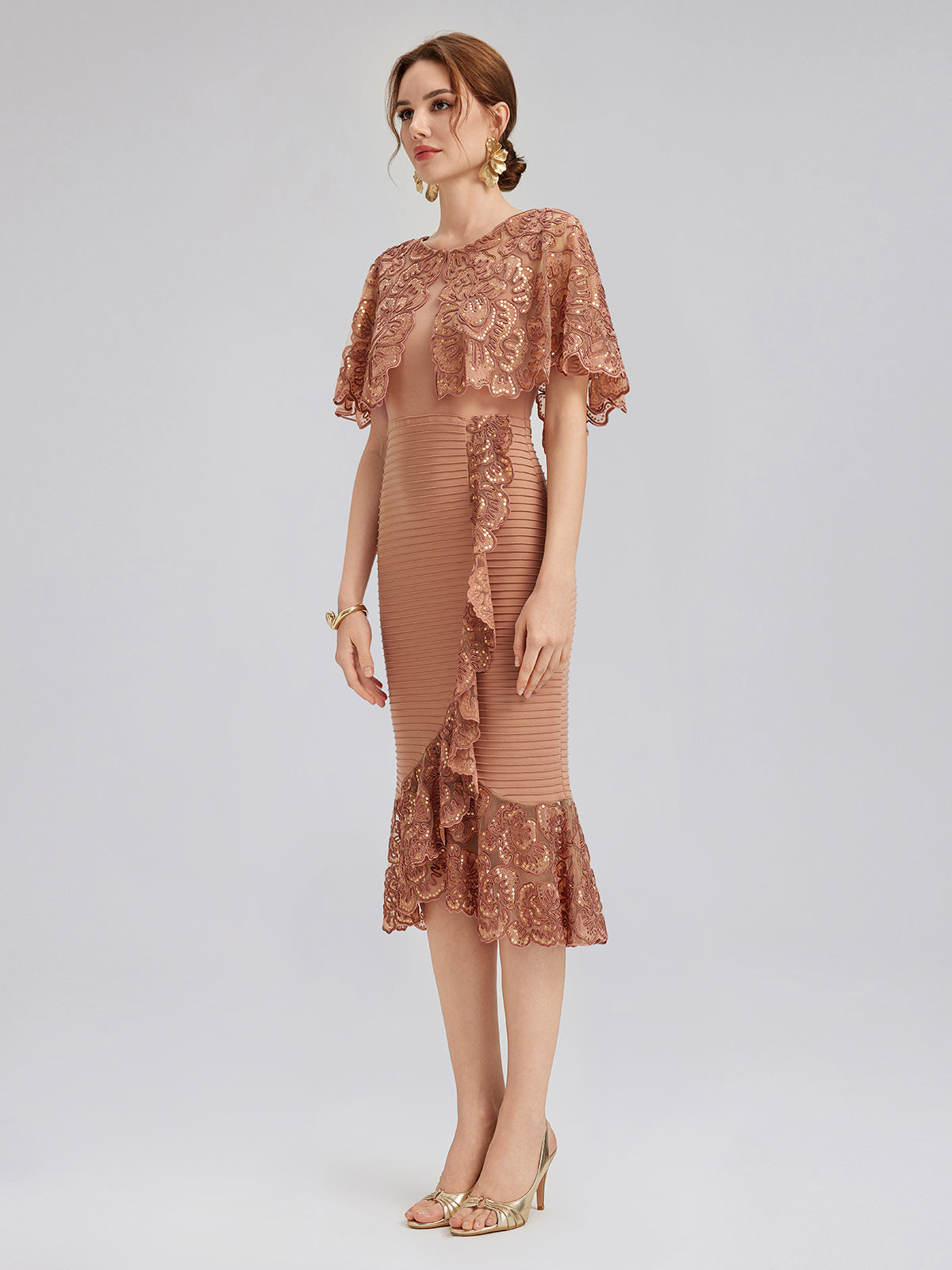 Dimensional embroidery adds a refined, feminine touch, enhanced by soft sequin accents that shimmer subtly. Pleated detailing shapes the body with ease, and the asymmetric hem lends movement and modern edge. With light stretch and a concealed back zip, it's structured yet easy to wear.