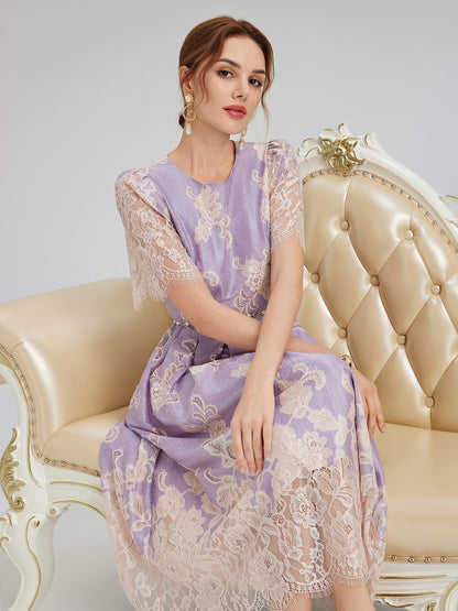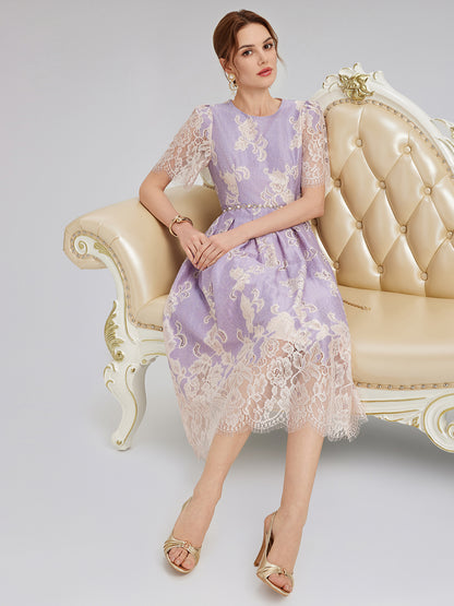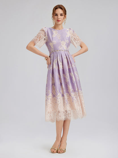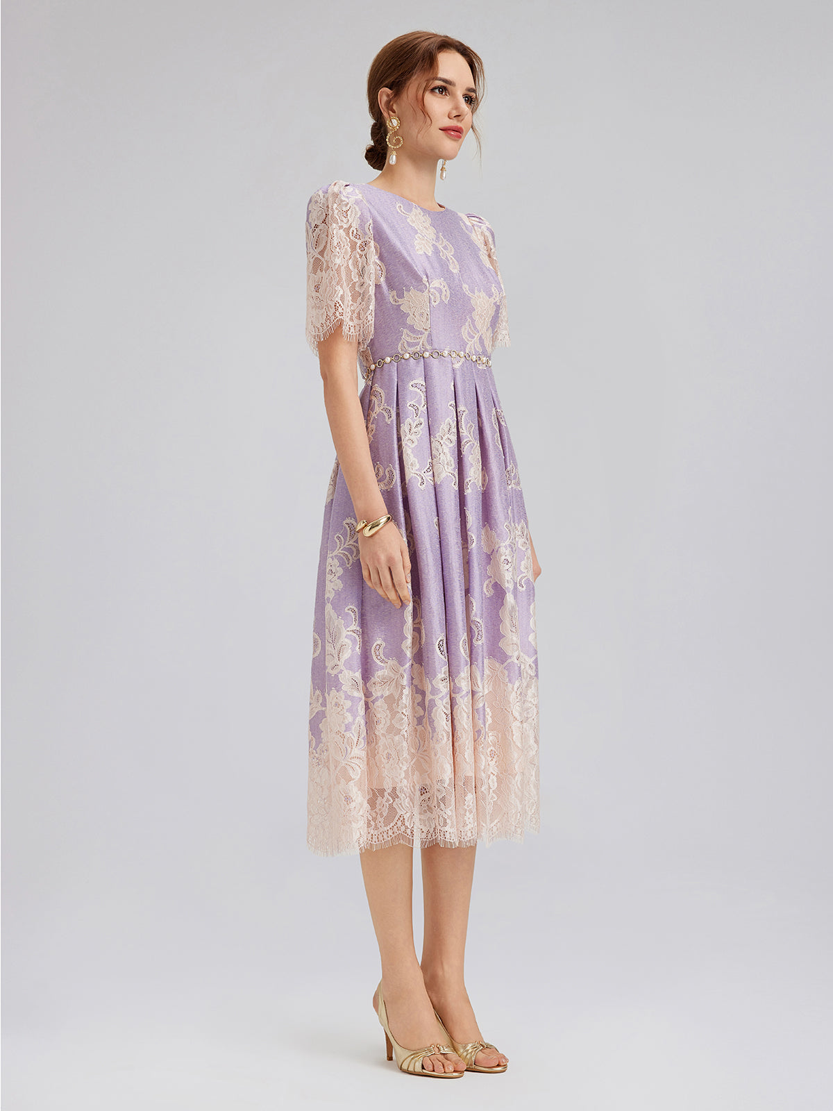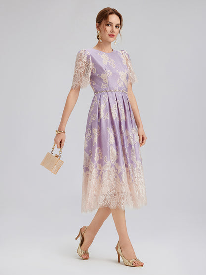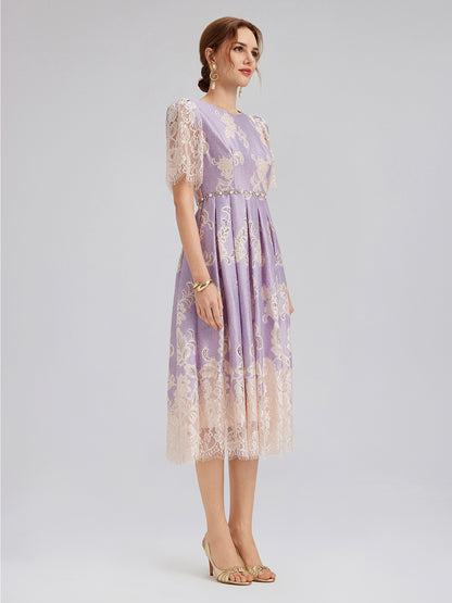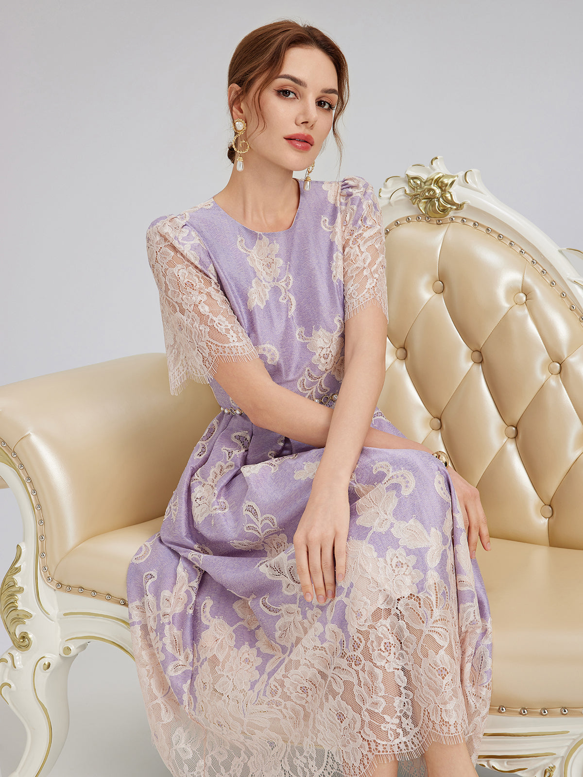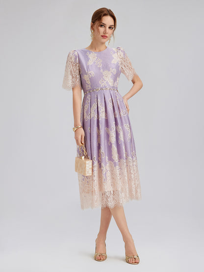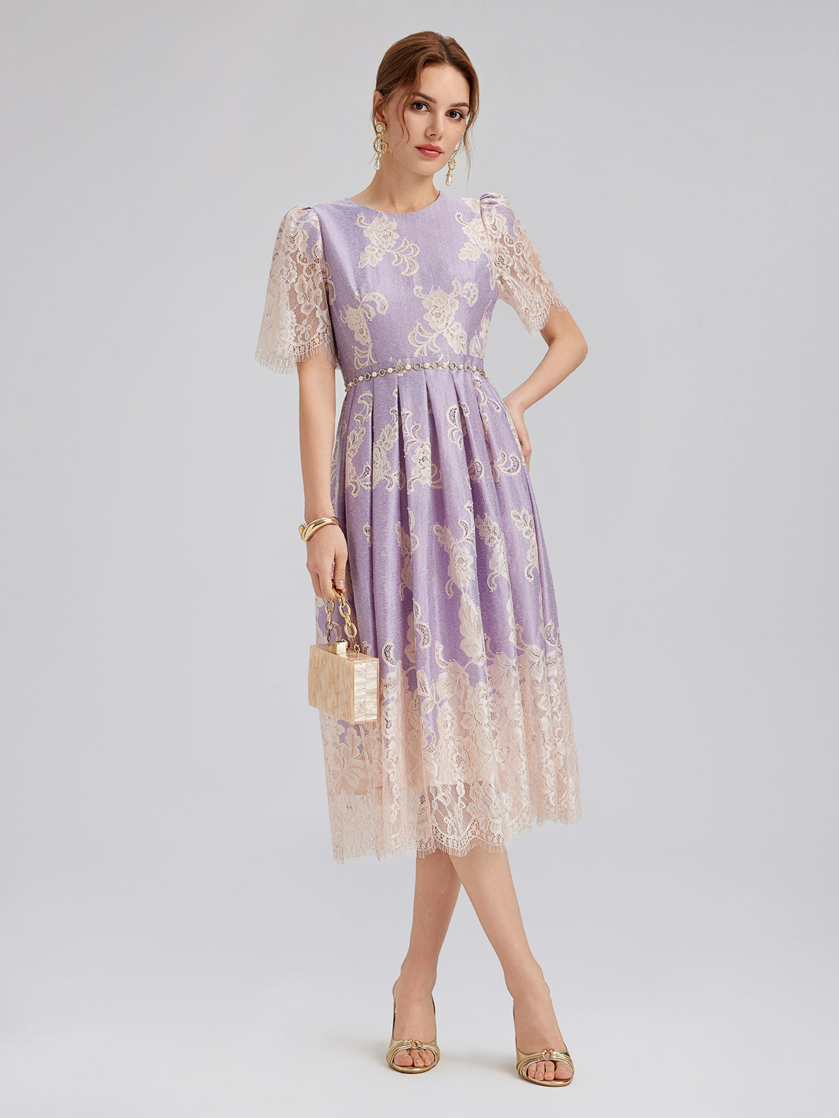 Custom lace panels soften the silhouette with intricate texture, while a delicate waist chain adds a touch of polish. The high-waisted cut elongates and flatters, paired with a back zip for easy wear. Designed for both subtle allure and feminine ease.